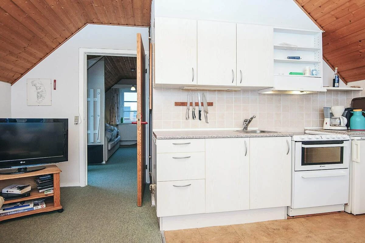 , open keuken(fornuis(elektrisch), afzuigkap, koffiezetapparaat, afwasmachine, koelkast(+ vriesvak)), woon/slaapkamer(TV(kabel, duitse zender(s), Deense TV zenders (DR1 en TV2)), radio), slaapkamer(2-pers. bed), slaapkamer(2-pers. vouwbed), badkamer(bad of douche, wasbak, toilet), sauna(gedeeld met andere gasten, in huis), terras, BBQ, zwembad(gedeeld met andere gasten, in huis), zwembad(gedeeld met andere gasten, buiten)