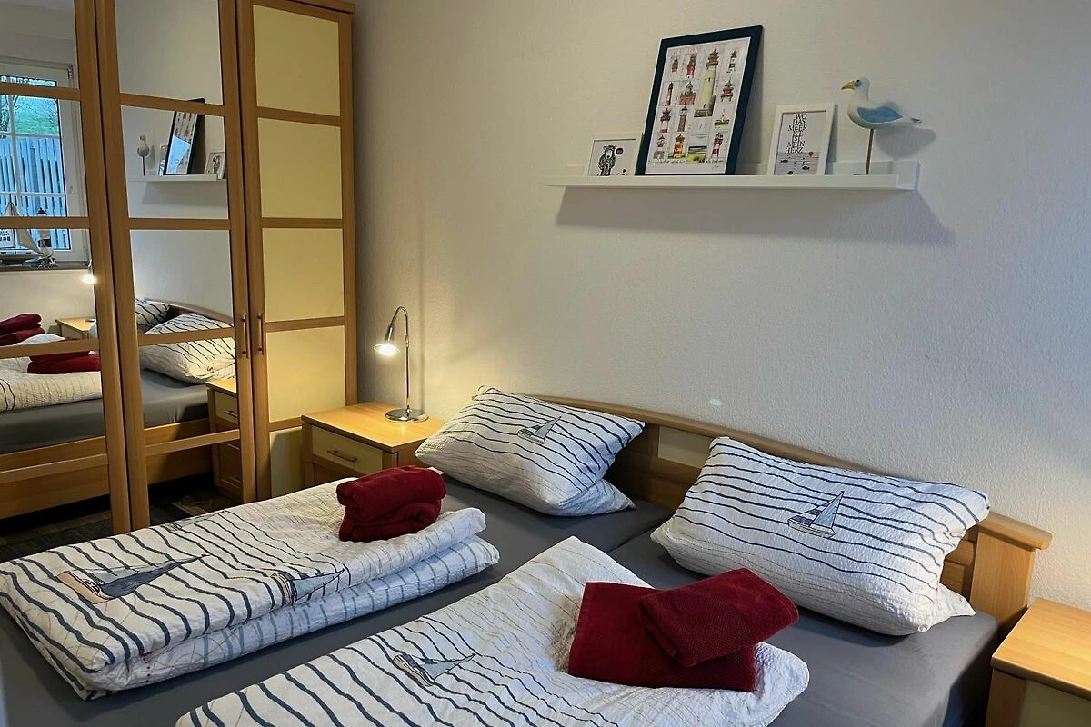 Die Fewo was zeer schoon en heeft alles wat je nodig hebt, incl. een paar pluspunten: koffie- en koffiepadsysteem, wasmachine en starterspakket. De inrichting is gezellig met voldoende opbergruimte. Het bed was voor ons iets te zacht. Vanwege andere beoordelingen hebben we een deken meegenomen, omdat de verwarming de gang en de keuken niet voldoende verwarmde en er een koude-/ tochtgevoel ontstond. De vloer is te koud voor blote voeten/sokkenlopers. De contact per e-mail bij kleine gebreken, zoals uitval van internet, was goed en er werd geprobeerd het op te lossen. De locatie was dicht bij het strand en rustig. We zouden terugkomen.