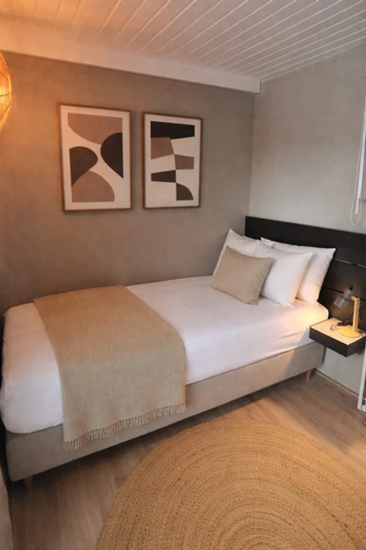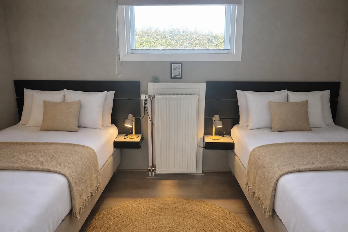 En een slaapkamer met 2 eenpersoons boxsprings
