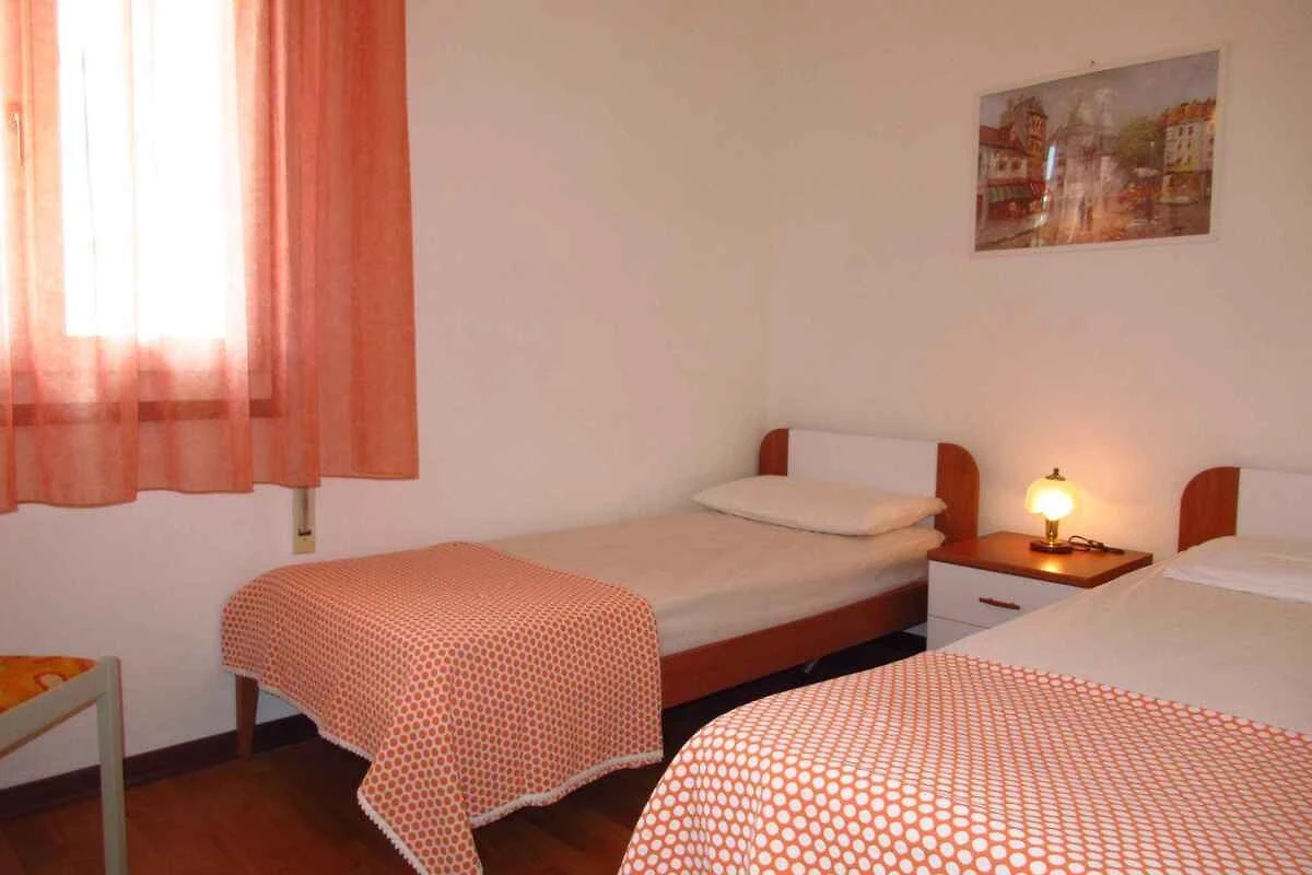 Uw vakantiewoning: Uw vakantiewoning beslaat 6 verdiepingen, 3 kamers (daarvan 2 slaapkamers), is 60 m² groot en is geschikt voor maximaal 6 personen. Een airconditioning zorgt op hete dagen voor een aangename temperatuur. De ingang is op de 3.verdieping, gelijkvloers en geschikt voor rolstoelgebruikers en leidt direct in het portaal. De indeling van de kamers is als volgt: recreatieruimte als doorgangskamer en met 2 extra bedden, eethoek en TV. De eethoek heeft plaats voor 6 personen. U heeft toegang tot het balkon met tuinmeubelen, 1 tafel en 2 stoelen. slaapkamer met 1 tweepersoonsbed. slaapkamer met 2 éénpersoonsbedden. Kooknis in de woonkamer met eethoek, afwasmachine, gasfornuis (4 pitten), bakoven, afzuigkap, koelkast (vriesvak), magnetron en wasmachine. De eethoek heeft plaats voor 6 personen. badkamer met douche, 1 wastafel, WC en bidet.