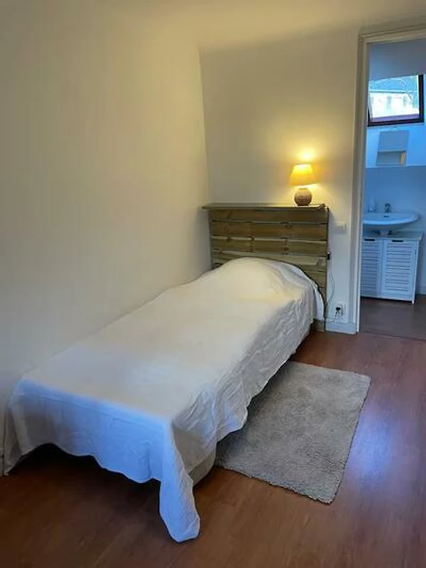De drie slaapkamers bevinden zich op de bovenverdieping (tweepersoonsbed 160x190; tweepersoonsbed 180x200 ook als eenpersoonsbedden; eenpersoonsbed 90x200). De beide van elkaar onafhankelijke "vleugels" zijn uitgerust met een eigen kleine wasruimte ("salle d'eau", elk met wastafel met koud en warm water en wc). De trap naar de bovenverdieping is overigens vrij smal en steil (zie foto) en kan voor kleine kinderen of mensen die niet meer zo fit zijn een probleem vormen.