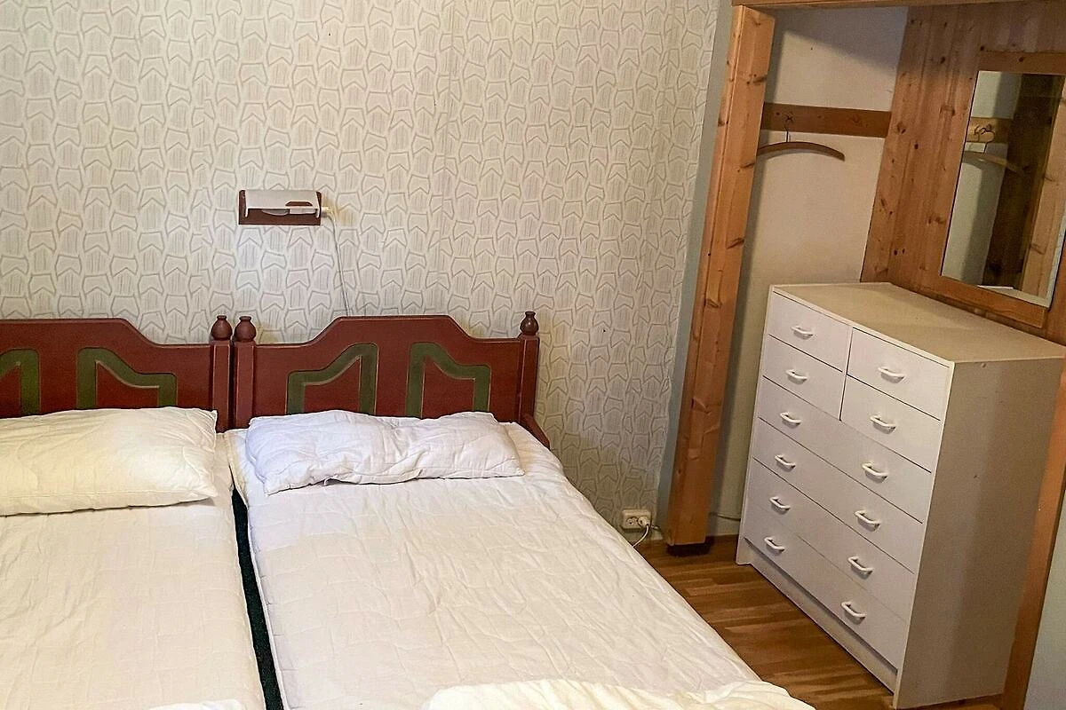Keuken(fornuis(elektrisch), koffiezetapparaat(filtermaling), wafelijzer, koelkast, vriezer(100-139L)), woon/slaapkamer(1-pers. vouwbed, TV, radio, stereo-installatie), slaapkamer(2x 1-pers. bed), slaapkamer(1-pers. bed), badkamer(wasbak, douche, toilet), verwarming(elektrisch), tuinmeubilair, parking