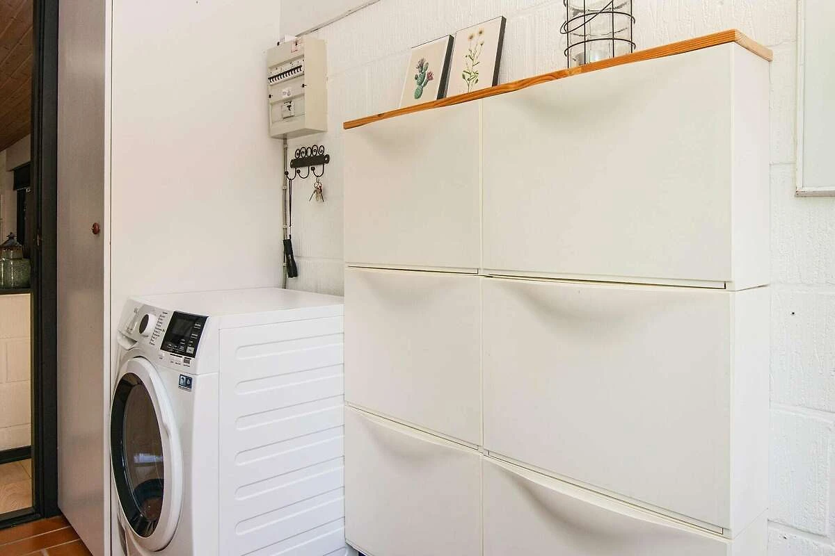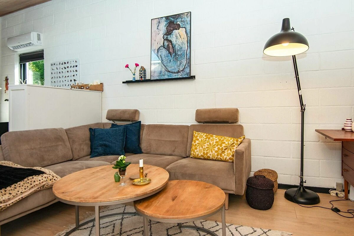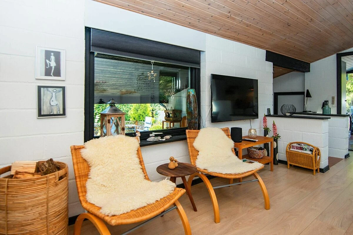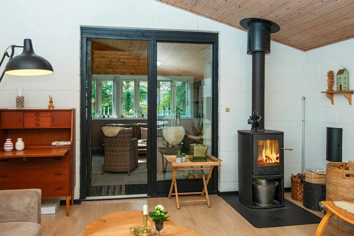 Keuken(kachel(inductie), koffiezetapparaat, oven, afwasmachine, koelkast(+ vriesvak), wasmachine), woon/slaapkamer(TV(duitse zender(s), Deense TV zenders (DR1 en TV2)), chromecast), slaapkamer(2x 1-pers. bed, 2-pers. bed), slaapkamer, badkamer(wasbak, douche, toilet), veranda, ligbad(buiten, 6 personen), verwarming(elektrisch), terras, tuinmeubilair, lucht-lucht warmtepomp