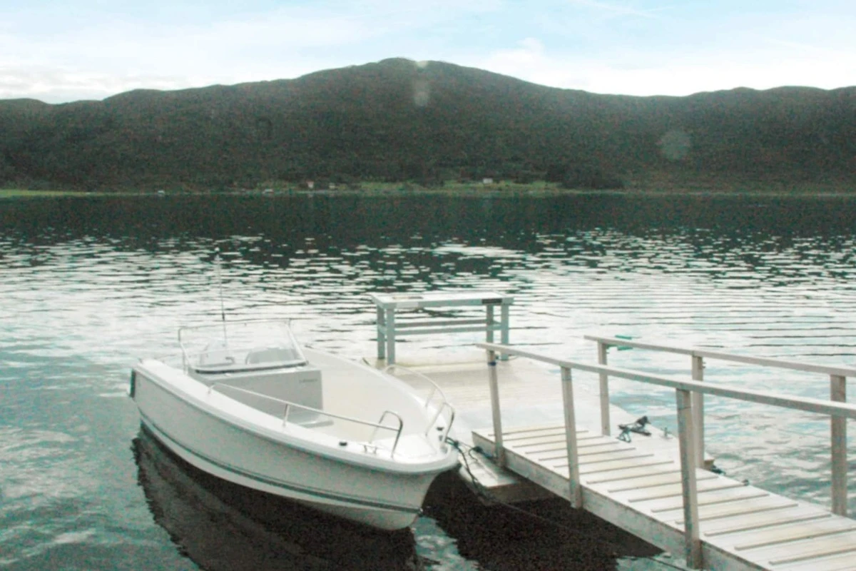 Eines von mehreren gleichwertigen, modernen Ferienhäusern unmittelbar am Ufer in Haugsbygda, mit Panoramaaussicht zum Fjord! Die weiteren Objekte vor Ort sind 33224, 33225 sowie 40714. Von der insgesamt 40 m² gr. Terrasse dieses Hauses, mit Außen-Whirlpool für bis zu 5 Pers., sowie vom Anlegesteg vor dem Haus genießt man großartigen Meerblick! Der Außen-Whirlpool ist das ganze Jahr über nutzbar, die gewünschte Temperatur stellen Sie selbst ein. Auch im Inneren bietet dieses Feriendomizil erstklassige Qualität und ein Ambiente zum Wohlfühlen. Zwei zusätzliche Schlafplätze für Kinder bis zu 16 Jahren ggf. bei Buchung zu bestellen. Die zwei Einzelbetten im Haus können, falls gewünscht, auch als Doppelbett, und umgekehrt das Doppelbett im anderen Schlafzimmer als zwei Einzelbetten genutzt werden. Am Schwimmsteg direkt unterhalb des Hauses liegt das mietbare Boot bereit: *18 Fuß Boot mit 60 PS starkem 4-Takt Motor, Steuerstand, Kartenplotter/GPS/Echolot und Elektro-Starter. Schwimmwesten sind bei Anmietung des Bootes inklusive. Ein Bootsführerschein ist für Gäste erforderlich, die nach 1980 geboren wurden. Diese Gegend bietet eines der besten Angelreviere Norwegens! Im Zeitraum 21.02.-15.03. tauchen hier große Schwärme von Kabeljau auf, die Angelgründe dafür liegen ca. 40 Min. Bootsfahrt vom Haus. Eigene überdachte Filetierbank mit Licht und fl. Wasser vor dem Haus. Zudem 16 m² großer Schuppen hinter dem Haus zur Aufbewahrung von Angelzeug und zum Trocknen der Kleidung. Forellenangeln im See Skogevatnet in 7 km, Lachs und Forelle im Fluss Ørstaelva in 40 km Entfernung. Nur 50 m zum nächsten Badeufer! Wandern Sie durch das kahle, offene Gebirge oberhalb von Haugsbygda, wo man großartige Aussichtspunkte mit Blick bis zum Horizont findet. Kartbahn 9,2 km weiter (Sa. geöffnet). Zum südlichsten Vogelfelsen des Landes, Runde, sind es 47 km, nach Ålesund, Stadt des Jugendstils und mit Aquarium Atlanterhavsakvariet 70 km und eine Fährüberfahrt. Das Vestkapp, der westlichste Punkt des Landes, liegt etwa 90 Min. Fahrzeit entfernt.