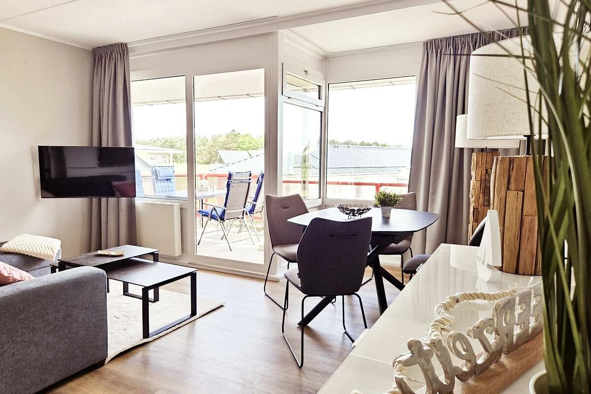 Een kindvriendelijk 4-persoons appartement gelegen op de 1e etage met vrij uitzicht op het oosten. Dit appartement beschikt over een ruime woonkamer met flatscreen TV, zit- en eethoek en een aparte zit-erker.
