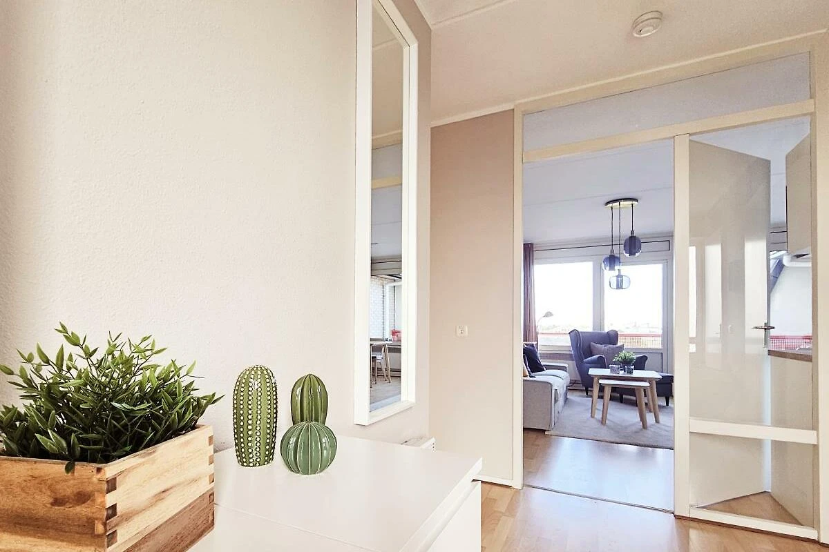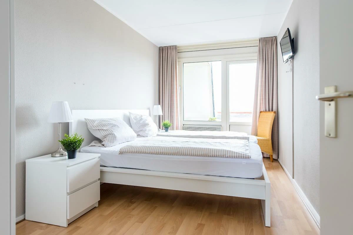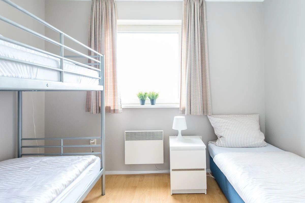 Vanuit de hal is er toegang tot de twee slaapkamers. De eerste slaapkamer heeft een royaal tweepersoons bed, een televisie en een openslaande deur naar het balkon. De tweede slaapkamer beschikt over een stapelbed en een eenpersoonsbed.