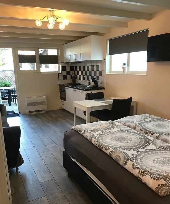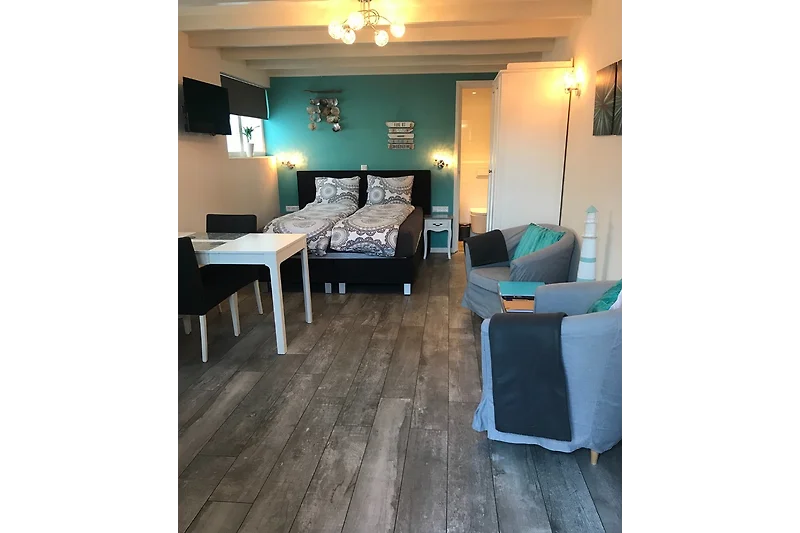 Na een wandeling op het strand of in de duinen, gewinkeld in Zandvoort, Haarlem of Amsterdam is het fijn "thuiskomen" in een luxe omgeving. Het van vloerverwarming voorziene huisje heeft alles wat u nodig heeft voor een heerlijk verblijf in Zandvoort. Binnenkomen via een eigen entree ziet u de uitnodigende boxspring, de verstelbare eettafel en de volledig ingerichte keuken. De keuken is voorzien van koelkast met vriesvak, combimagnetron, vaatwasser, 2 pits kookplaat en afzuigkap. De badkamer heeft een ruime inloopdouche, badkamermeubel met voldoende bergruimte, en toilet. Uw kleding kunt u kwijt in de kledingkast met passpiegels. Uiteraard mag de verstelbare tv niet ontbreken. Airconditioning, gratis WIFI en Netflix behoort ook de mogelijkheden. Ook heeft u de beschikking over een gratis privé parkeerplaats voor het huisje waar u ook de mogelijkheid heeft om uw electrische voertuig op te laden op eigen terrein. 's Ochtends een kop koffie drinken of 's middags borrelen kan op het eigen terras.