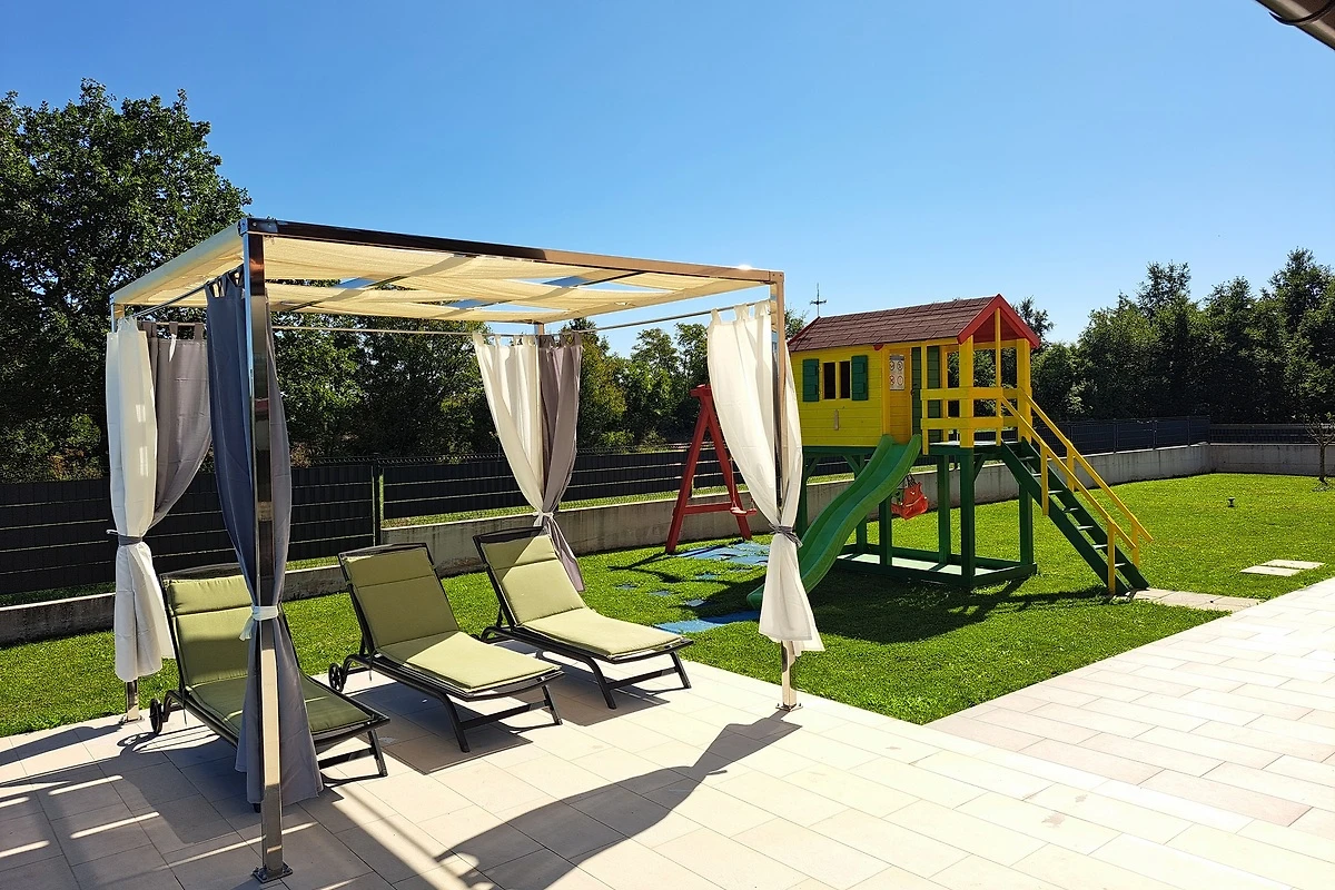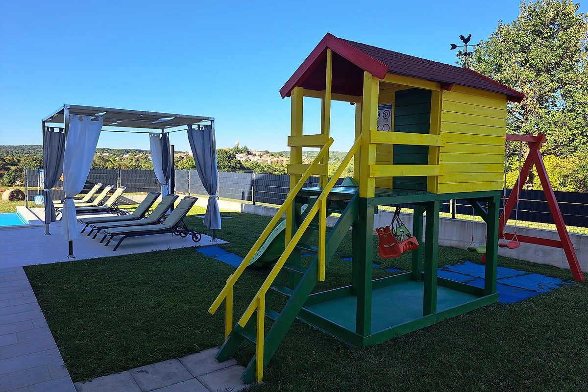 Voor kinderen is er een speelhuisje en twee schommels. Het terrein is zeer uitgestrekt.