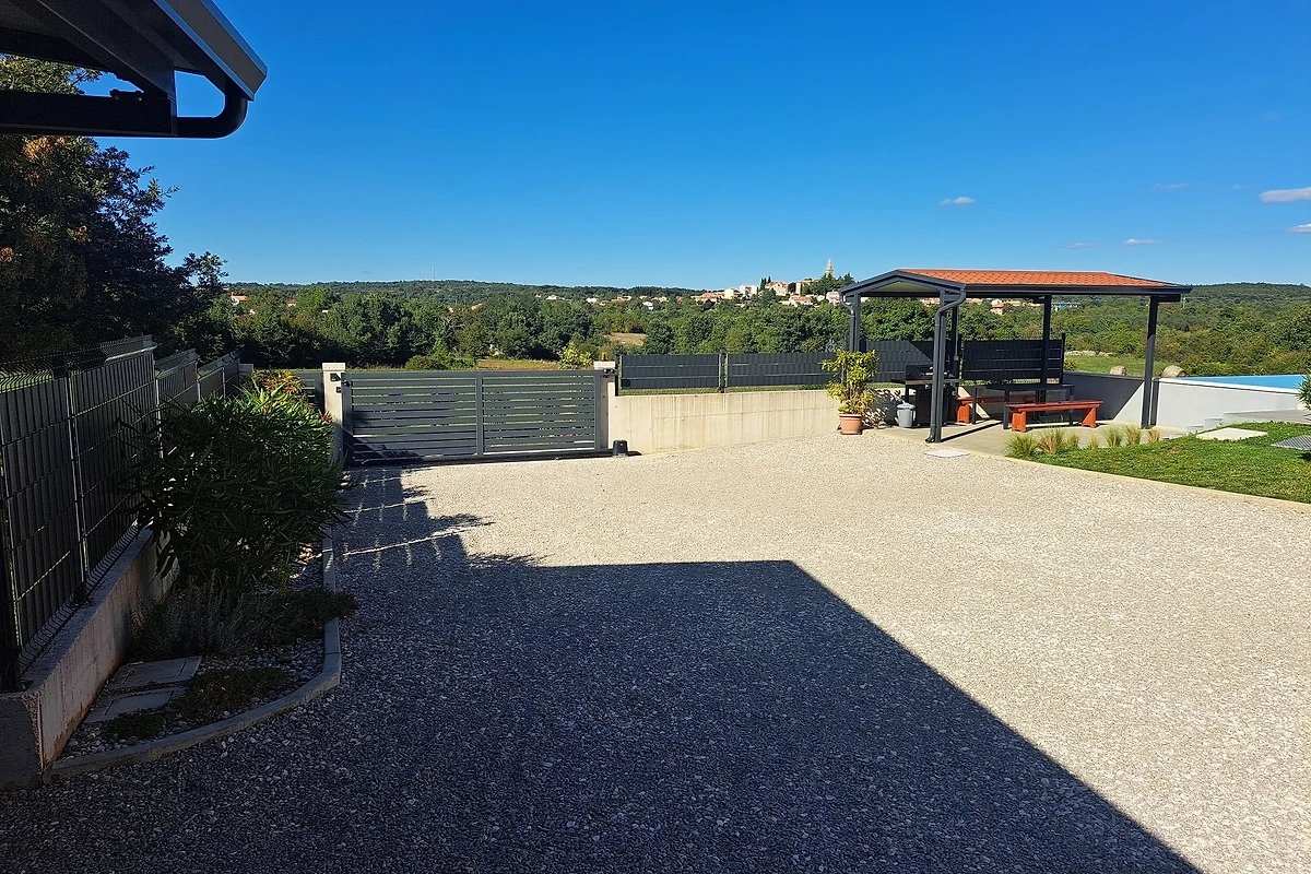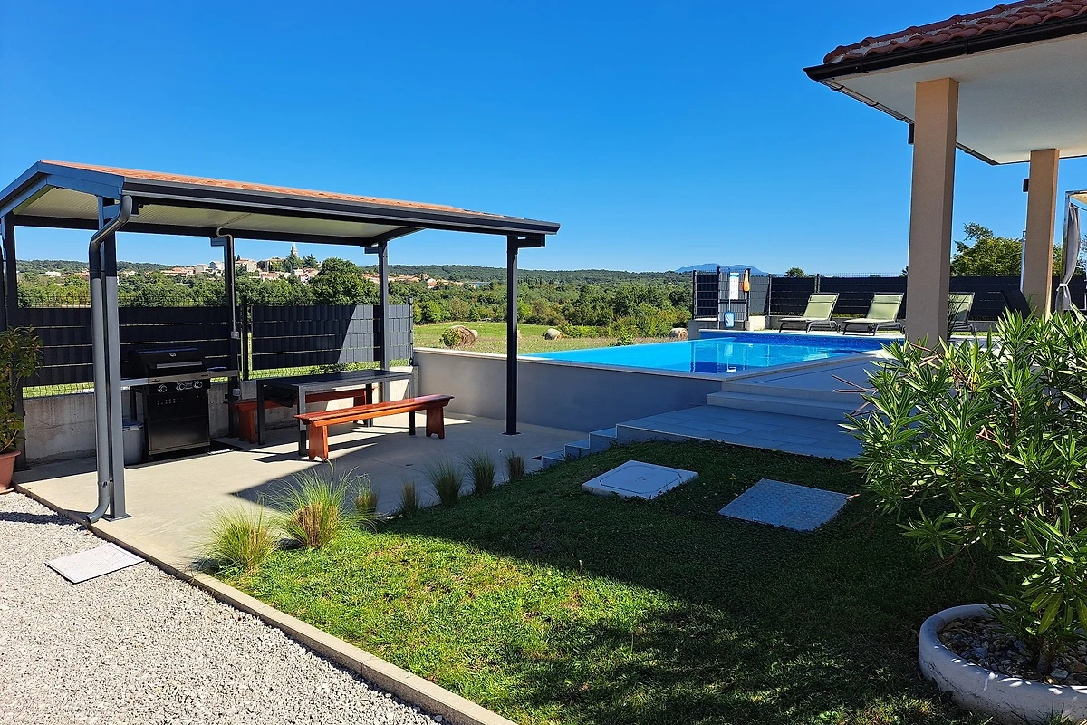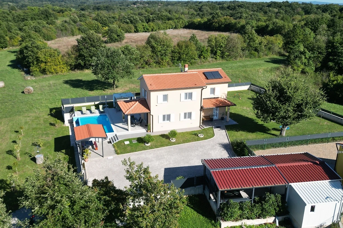 Villa Lukrida is een nieuw gebouwde villa nabij het stadje Zminj, maar biedt dankzij de ligging een fantastisch uitzicht over de stad, volledige privacy en rust.