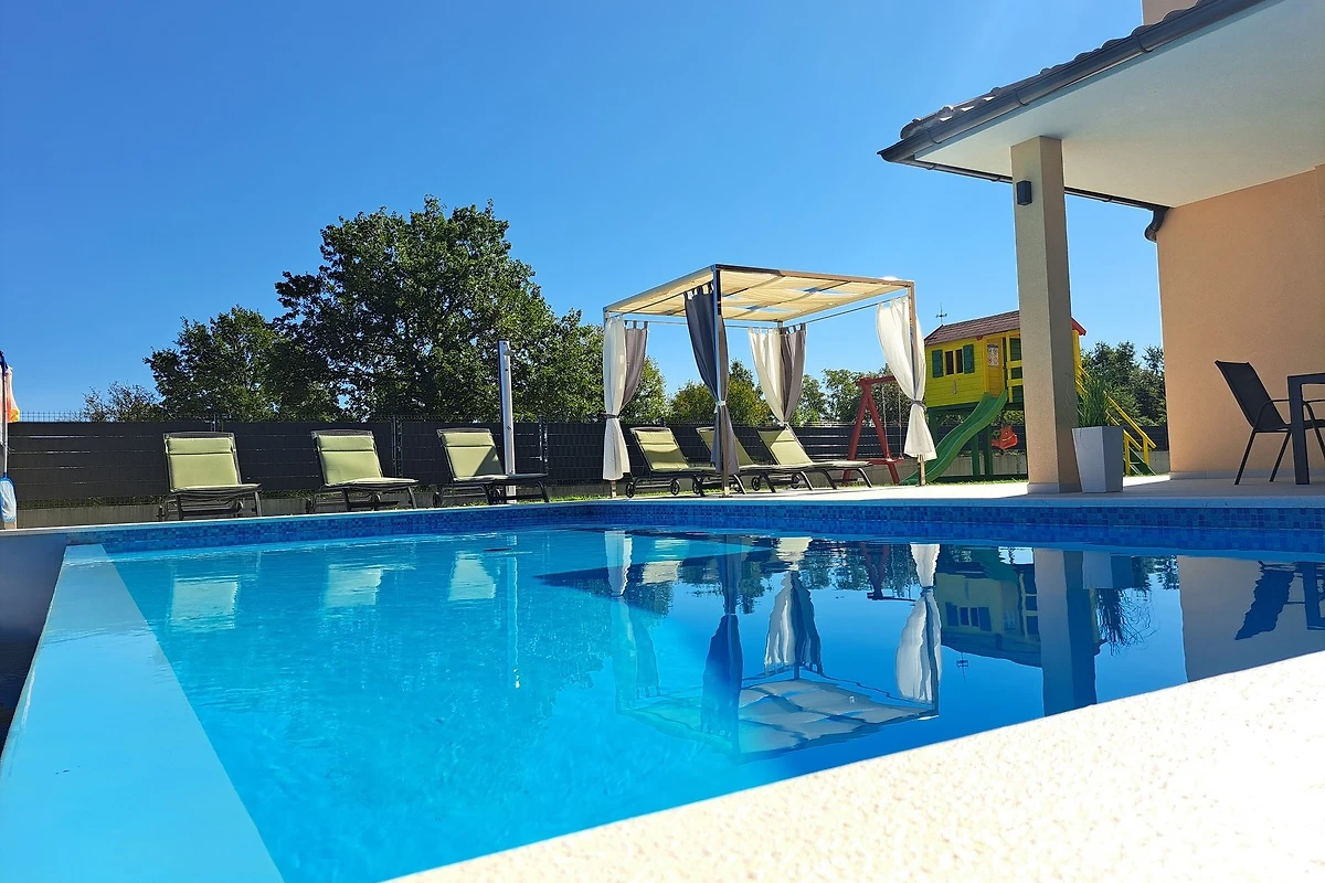 We waren als 5-köpfige Familie (2 volwassenen, 3 kinderen van 3-11 jaar) hier op vakantie. Het is al de 3e vakantie achtereenvolgens in Kroatië met een vakantiehuis en eigen zwembad. En wat moet ik zeggen: Dit huis, nee ik zeg liever deze villa, stelt alle anderen in de schaduw. Zeer modern ingericht, alles zeer, zeer schoon, het zwembad een droom (grootte ca. 32 m²). Het terrein is zeer groot. De verhuurders Ines en Dario zijn zeer, zeer aardig en vragen regelmatig of alles oké is. We kijken al uit naar volgend jaar, dan komen we daar weer!