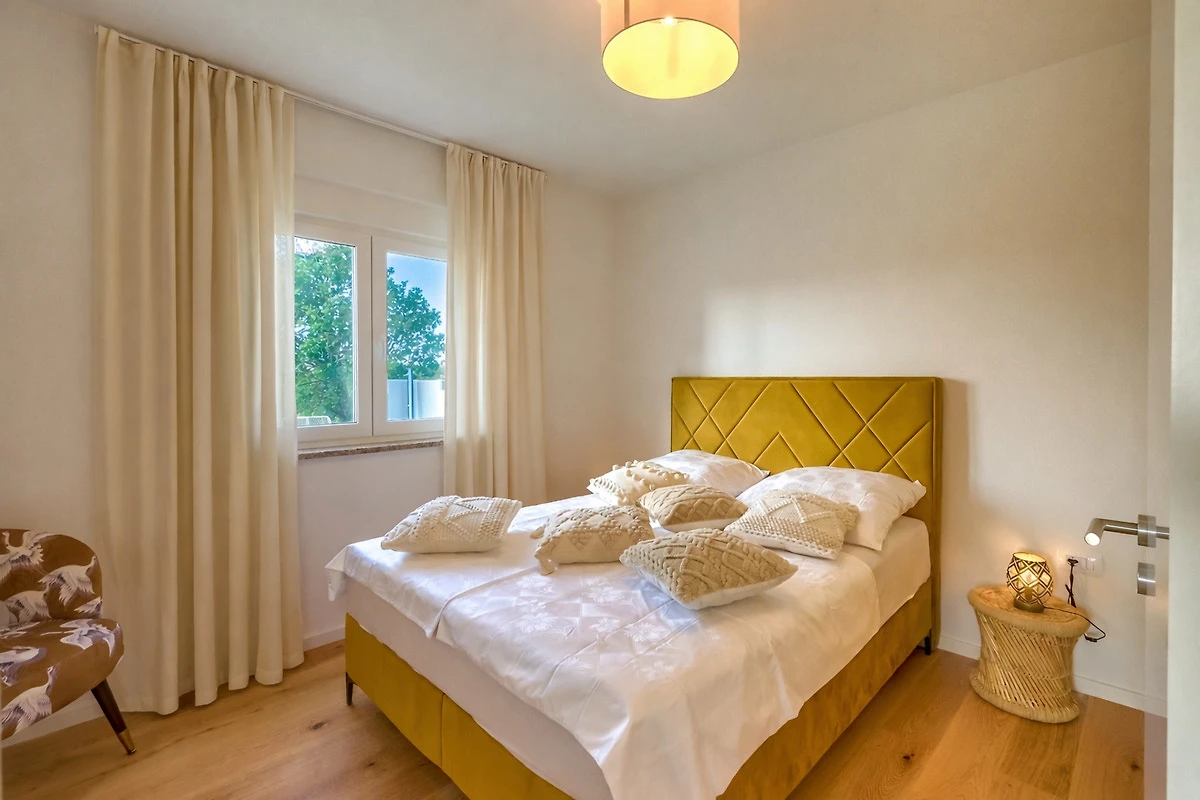 **Boek uw verblijf**: Neem contact met ons op om de beschikbaarheid te controleren en uw onvergetelijke vakantie in Kroatië te boeken. We kijken ernaar uit u te verwelkomen! 1 Slaapkamer met tweepersoonsbed 1,60x2,00 m, 1 slaapkamer met tweepersoonsbed 1,40x2,00 m, en 1 slaapkamer met uitschuifbaar bed 0,80x2,00 m / 1,60x2,00 m)