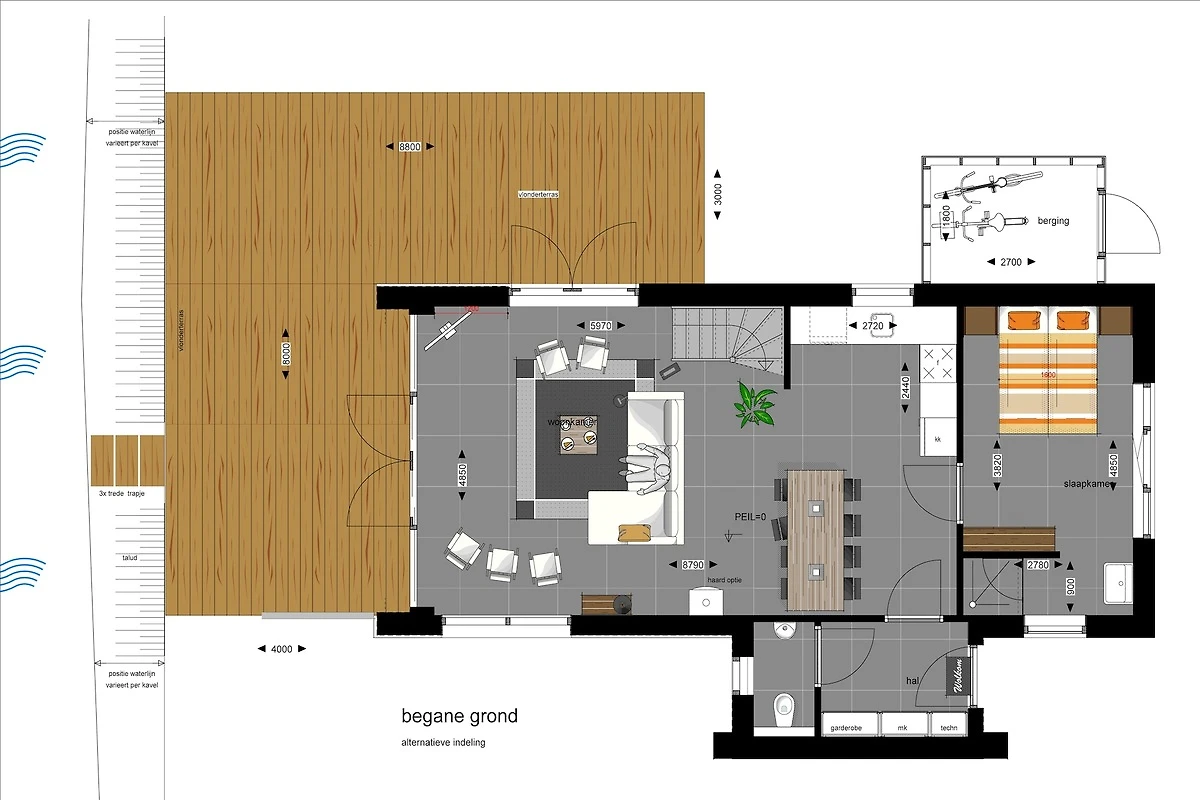 aanlegsteiger, wasdroger, wasmachine, verwarming(vloerverwarming), terras, tuin(omheind), tuinmeubilair