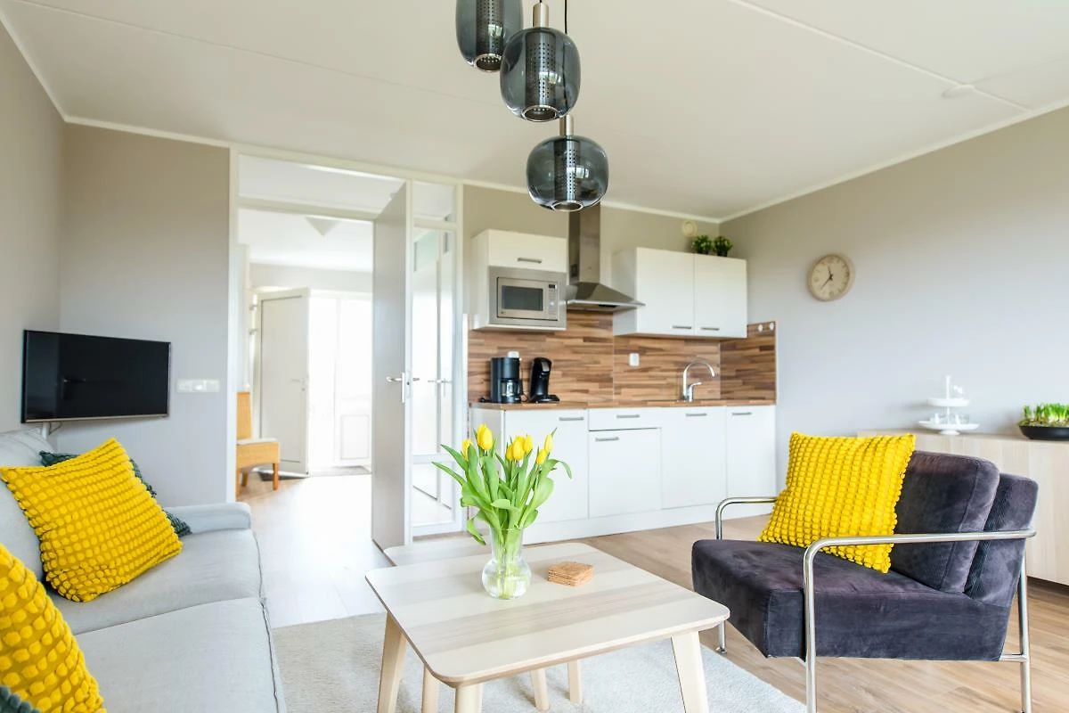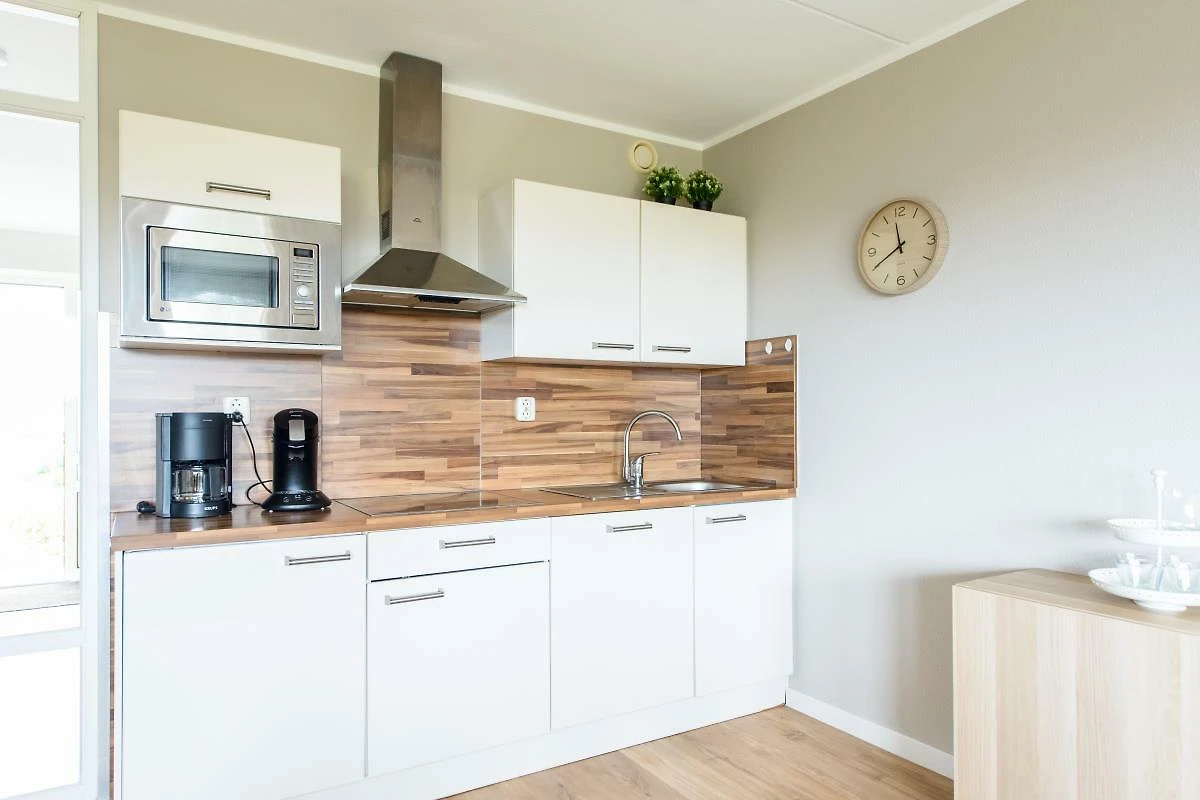 Comfortabel 4-persoons appartement gelegen op de 1e etage met uitzicht richting het westen. De woonkamer is huiselijk ingericht en beschikt over zowel een relax- als eetgedeelte. De open keuken is voorzien van onder andere een magnetron.