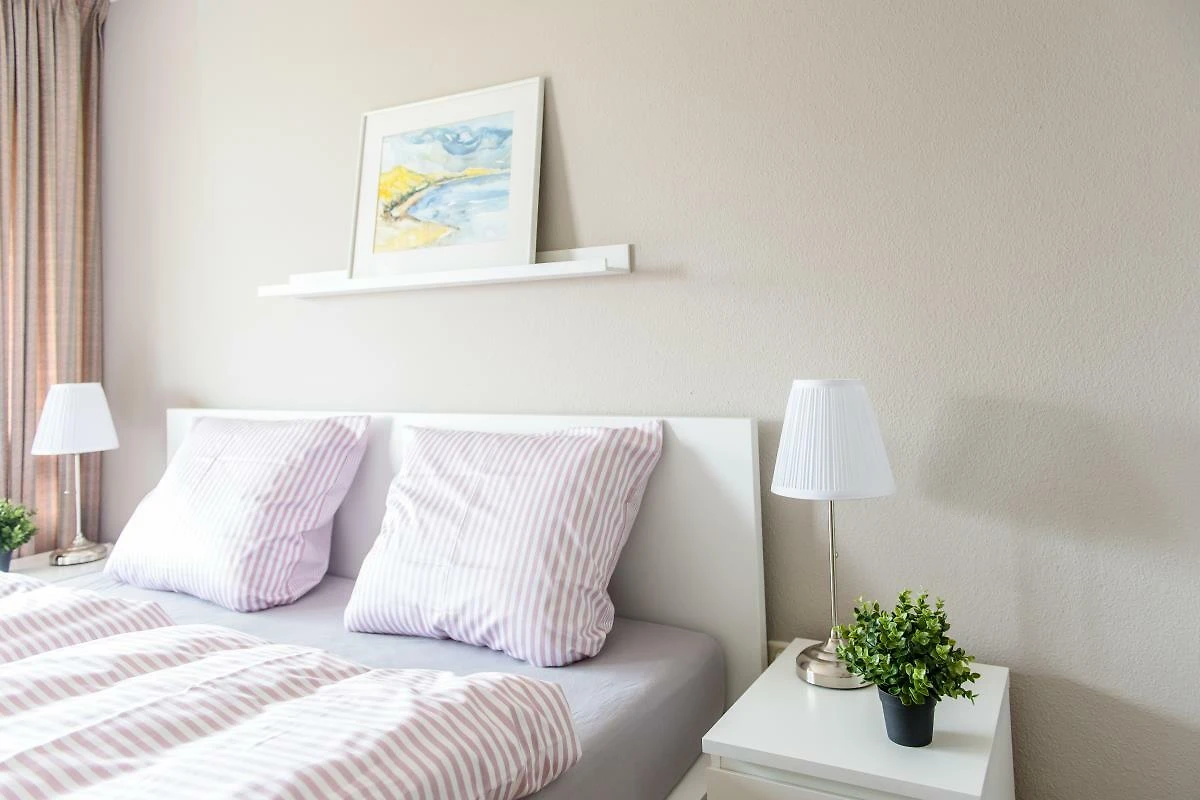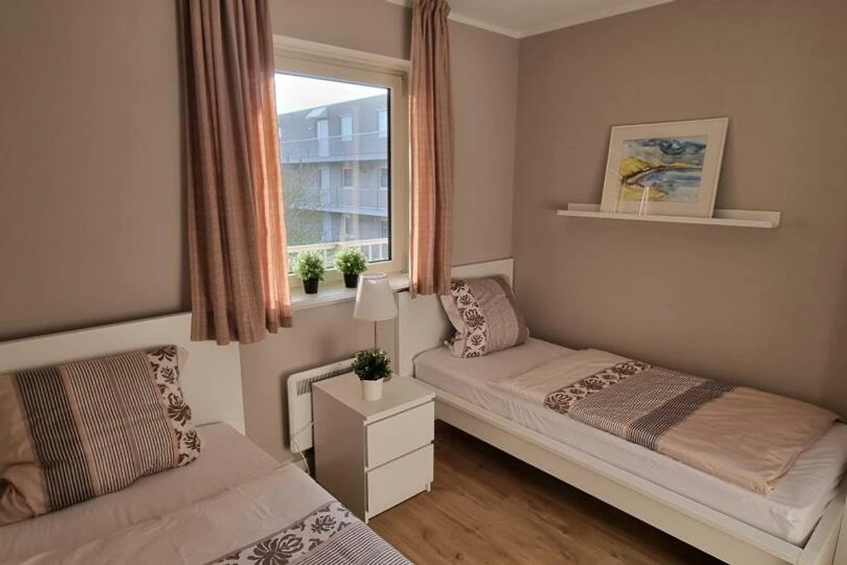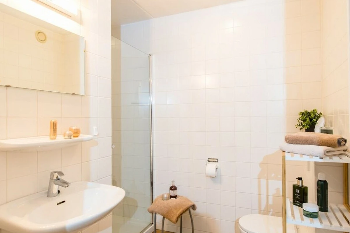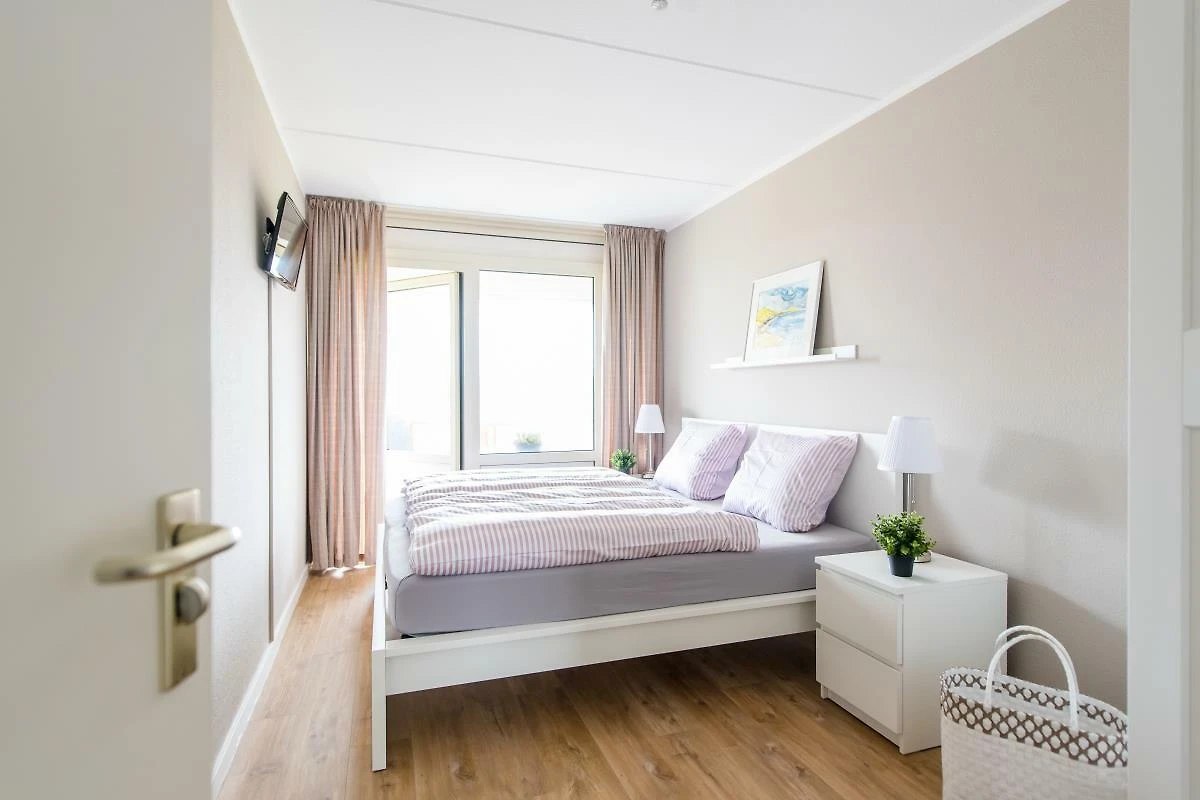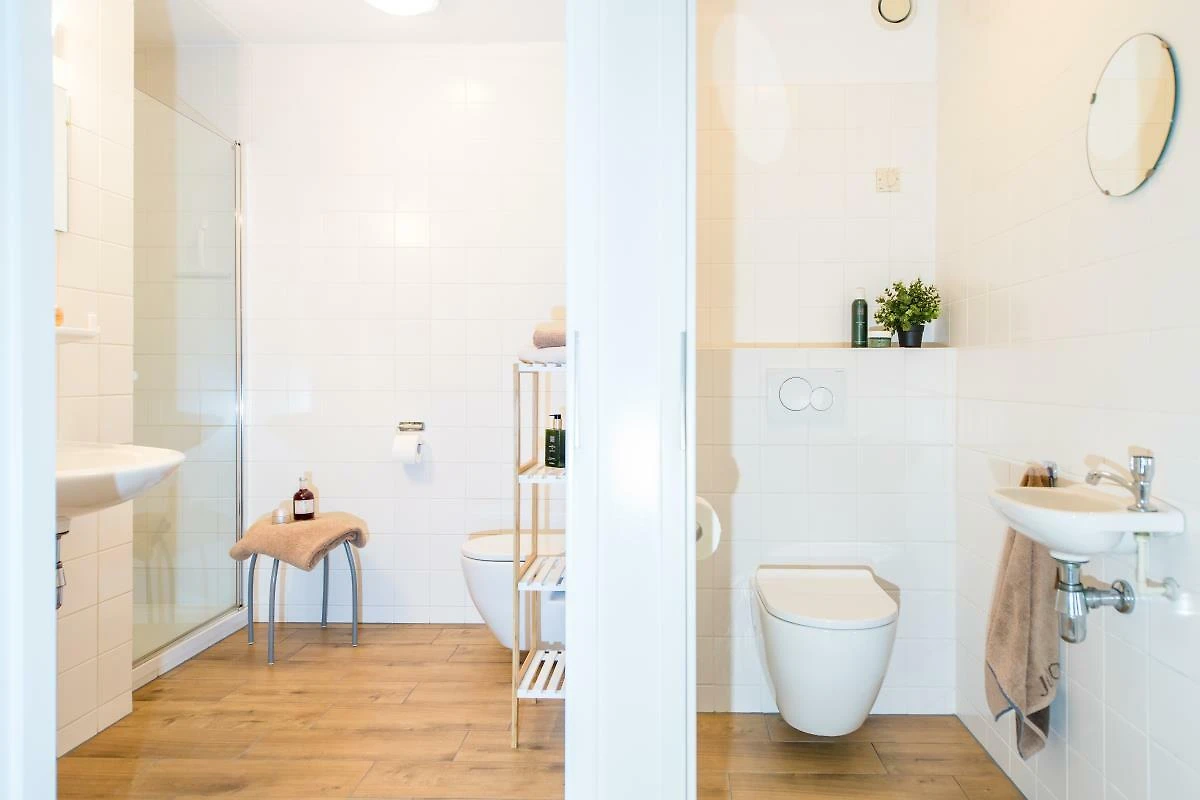 Vanuit de hal is er toegang tot de twee slaapkamers. De eerste slaapkamer heeft een royaal tweepersoons bed, televisie en een openslaande deur naar het balkon. De tweede slaapkamer heeft twee losse eenpersoonsbedden en uitzicht op de binnentuin. De ruime badkamer is voorzien van een douchecabine en wastafel. Daarnaast is er een separaat toilet aanwezig.