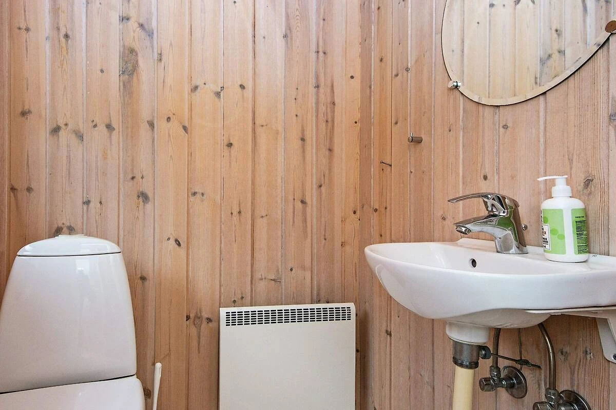 , keuken(fornuis(elektrisch), afzuigkap, koffiezetapparaat, magnetron, koelkast(+ vriesvak)), woon/slaapkamer(, TV(duitse zender(s), Deense TV zenders (DR1 en TV2), noorse TV zenders (NRK en TV2), zweedse TV zenders), CD-speler, stereo-installatie, kinderstoel, chromecast), slaapkamer(2-pers. bed, ledikant), slaapkamer(2-pers. bed), slaapkamer(2x 1-pers. bed), slaapkamer(2x 1-pers. bed), badkamer(vloerverwarming)(bad of douche, wasbak, toilet), badkamer(vloerverwarming)(wasbak, toilet), bijkeuken(wasdroger, wasmachine), carport, bubbelbad(in huis, verwarmd, 2 personen), sauna(in huis, 4 personen), balkon of terras, verwarming(elektrisch), terras, tuin, tuinmeubilair, ligstoelen, zonne energie