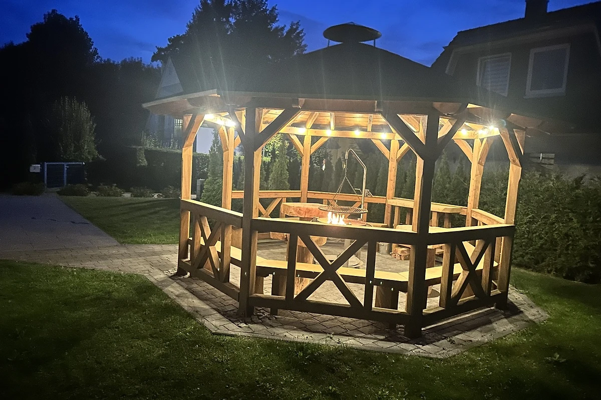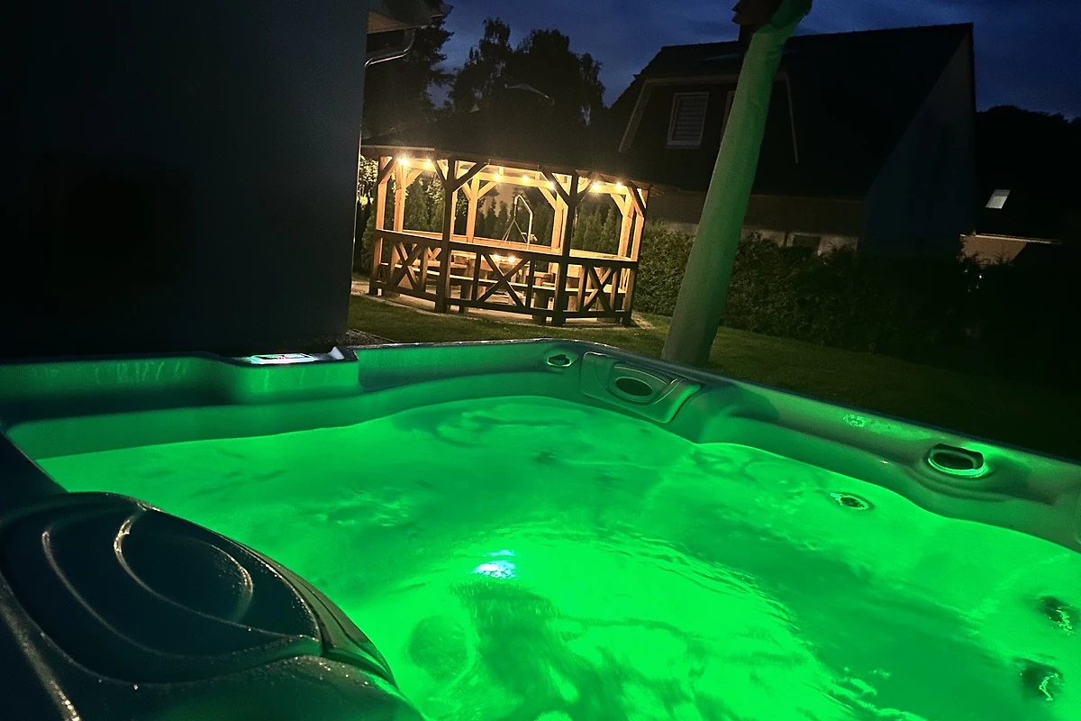 De het hele jaar door verwarmde buitenwhirlpool met een watertemperatuur van 38 graden en hydromassagestralen is slechts een van de vele hoogtepunten. De combinatie van sauna, gashaard en whirlpool doet uw hart sneller kloppen