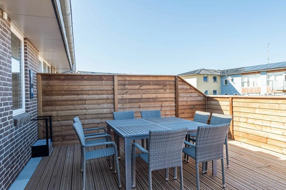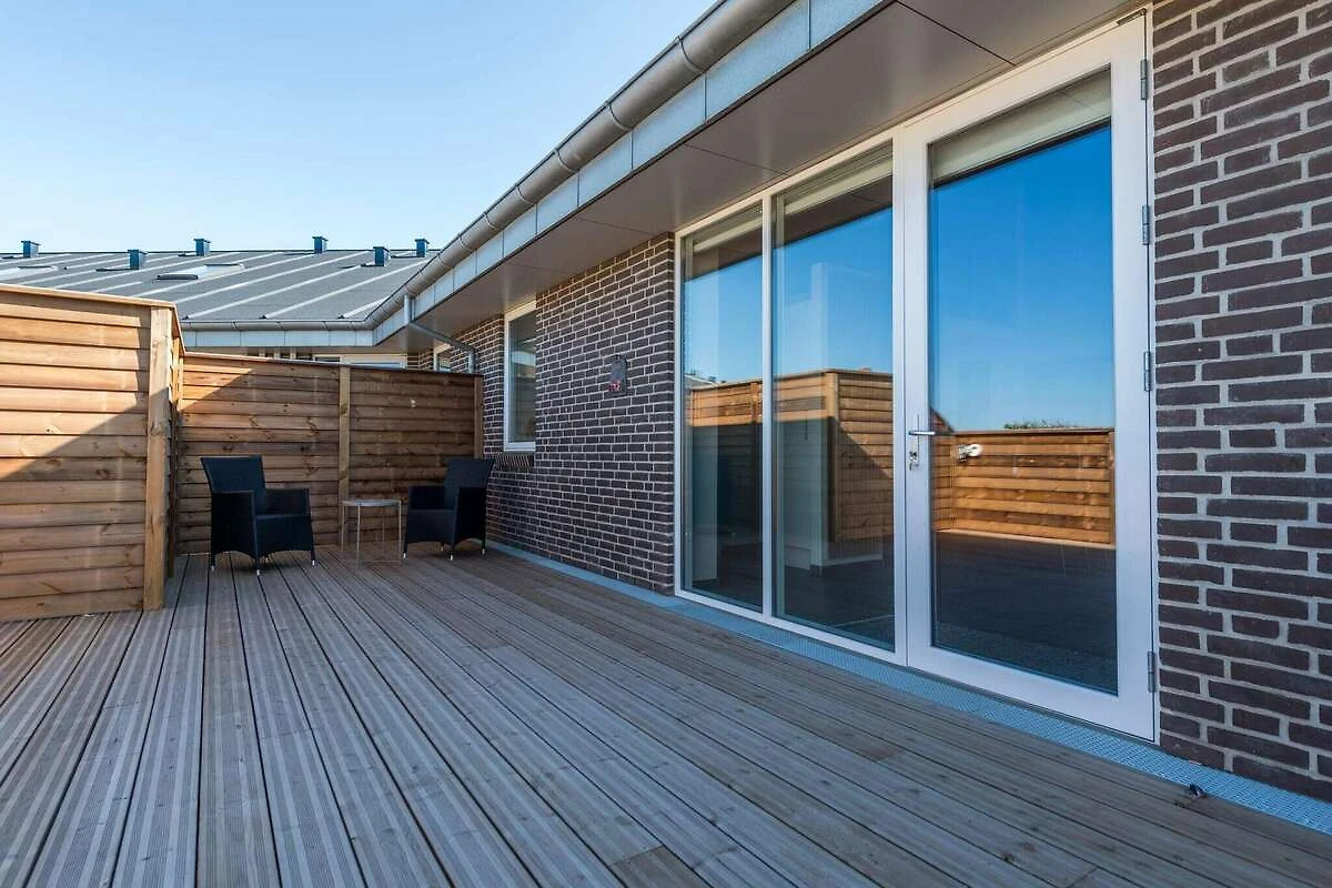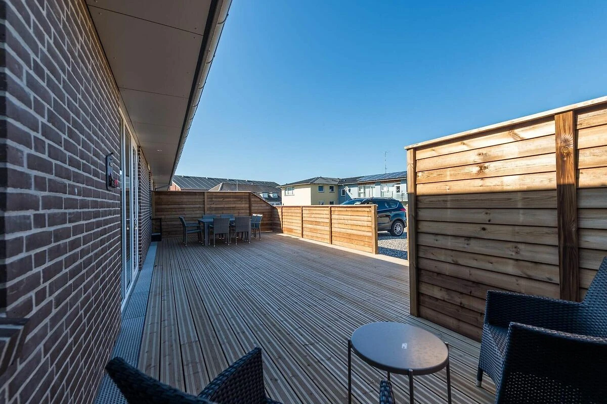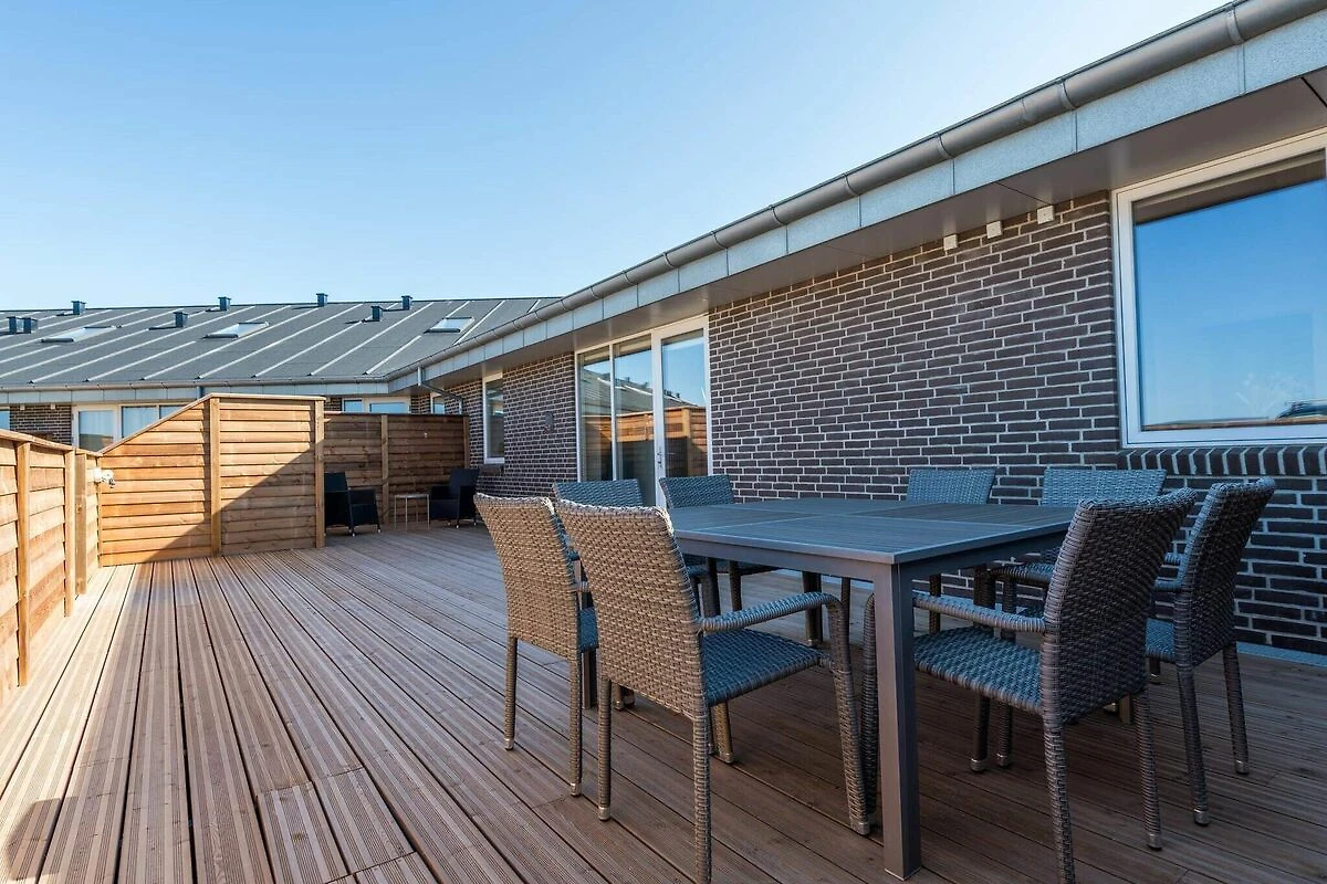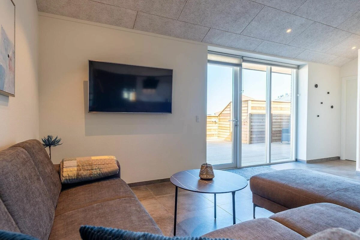 , woonkamer(2x 1-pers. vouwbed), keuken(kachel(inductie), koffiezetapparaat, afwasmachine, vriezer(1-59L), koel-/vriescombinatie), woon/slaapkamer(TV(duitse zender(s), Deense TV zenders (DR1 en TV2))), slaapkamer(2-pers. bed), slaapkamer(2-pers. bed), slaapkamer(2x 1-pers. bed), badkamer(wasdroger, wasbak, douche, toilet, wasmachine), badkamer(wasbak, toilet), patio, terras, tuinmeubilair, ligstoelen, tafelvoetbal, dart
