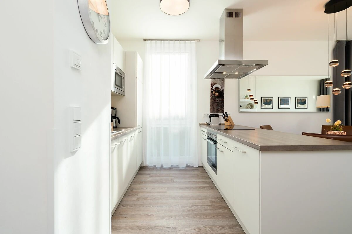 Moderne stijlvol ingerichte appartement, helder door de grote ramen en voldoende lichtbronnen - mijn slechtziende dochter kon zich goed oriënteren. We hebben ons erg prettig gevoeld, komen graag terug!