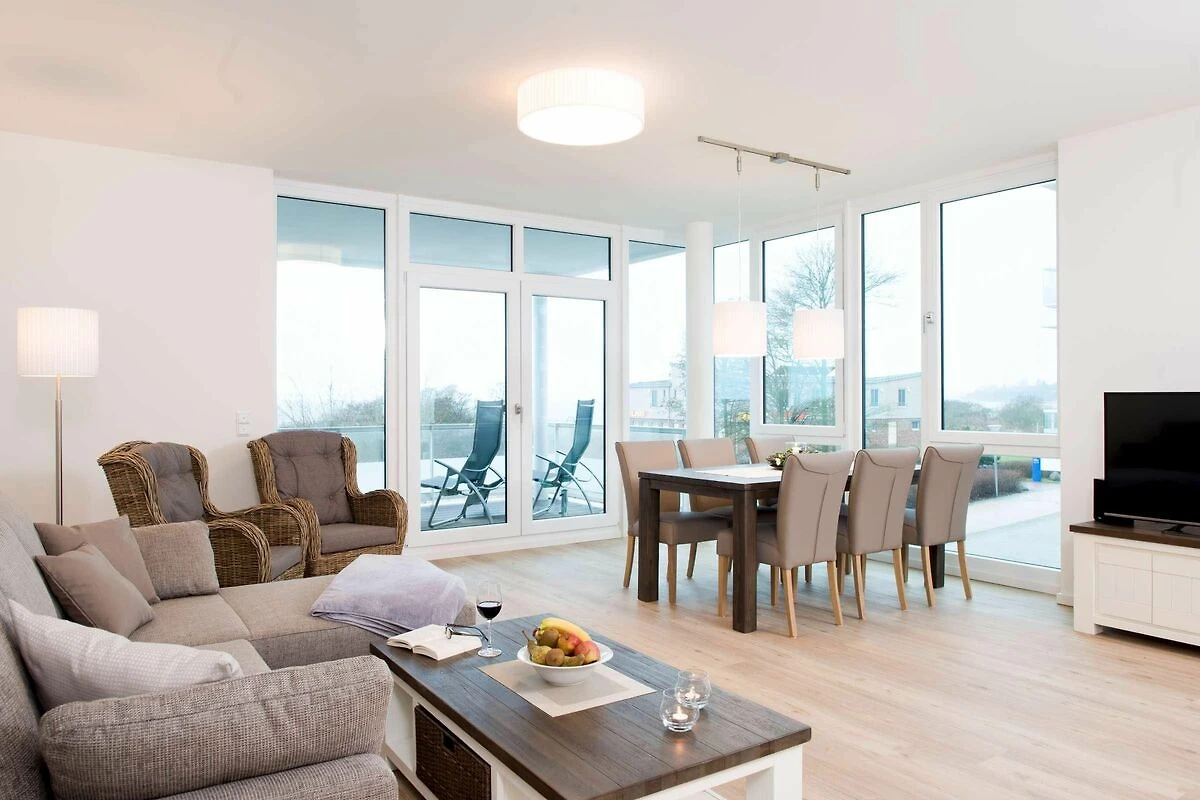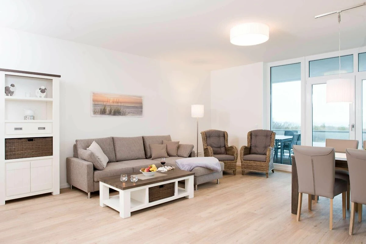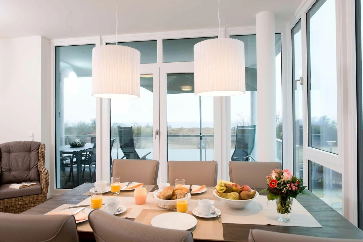Een uitstekende vakantiewoning die niets te wensen overlaat. De inrichting is compleet en modern. Het hele complex is zeer goed onderhouden. Daarnaast is er het unieke uitzicht op de Oostzee vanuit de woon/eetkamer of vanaf het grote balkon. Het strand ligt op slechts 50 m afstand en is ook zeer goed onderhouden. In de afgelopen 20 jaar hebben we ons nog nooit zo comfortabel gevoeld in een accommodatie als hier. De service van de familie Hoff is bijna griezelig. Vragen worden zeer snel en volledig beantwoord. De zeer goede indruk werd ter plaatse bij de ontvangst en het afscheid bevestigd. Om te voorkomen dat alles te positief klinkt, geven we Team Hoff gewoon de schuld van de twee regenachtige dagen ;-).