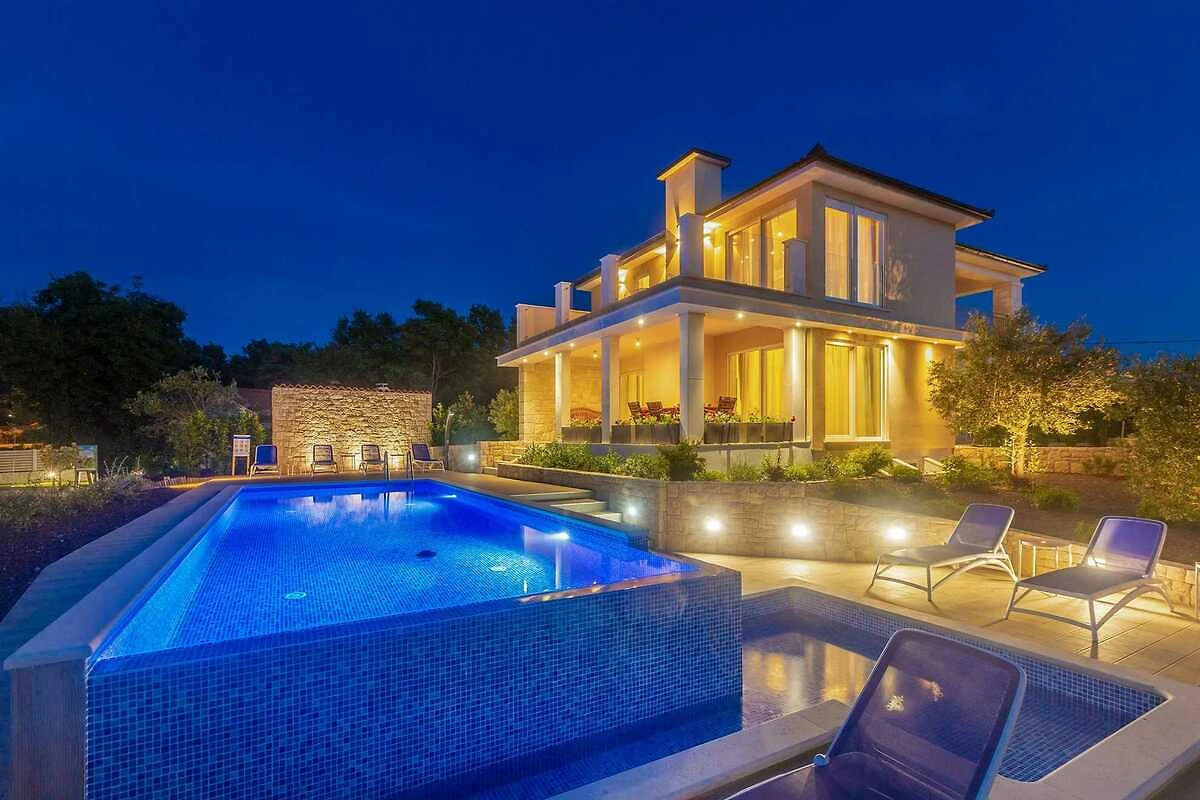 Modern ingerichte villa voor 10 personen met sauna, zwembad en jacuzzi. De villa heeft 4 slaapkamers, 4 badkamers, keuken, eetkamer en woonkamer. De gasten hebben een prachtige binnenplaats en tuin tot hun beschikking, die maximale privacy biedt. Airconditioning, satelliet TV, Wi-Fi zijn bij de prijs inbegrepen. Het is de ideale keuze voor uw vakantie op het eiland Krk met uw familie of vrienden!