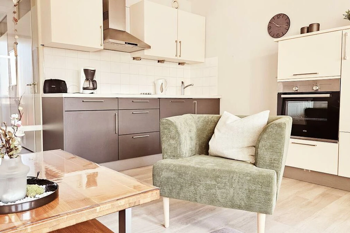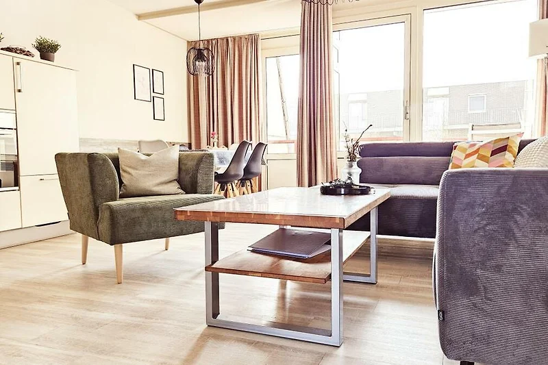 De woonkamer heeft een ruime zitkamer en zithoek. De moderne open keuken zorgt voor een ruimtelijk gevoel. De keuken is voorzien van onder andere een vaatwasser, oven en veel opbergruimte.