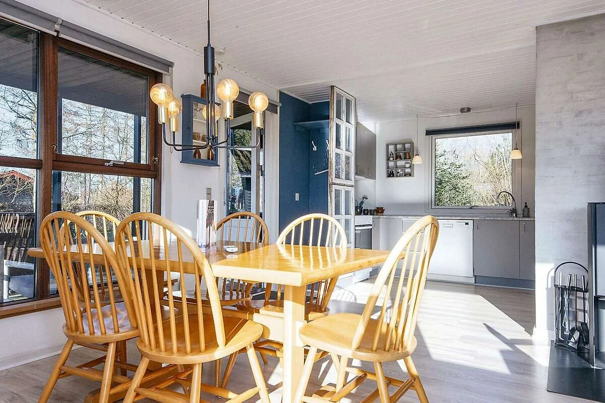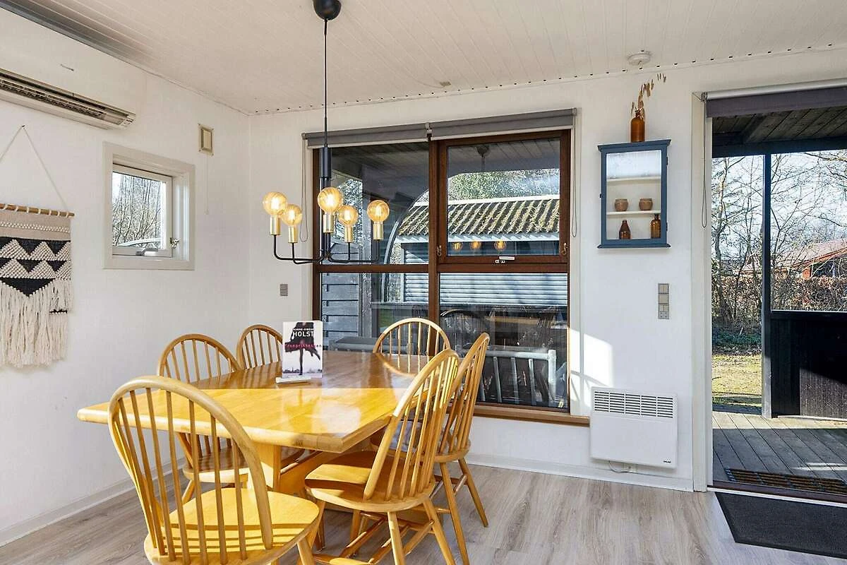 Dieses charmante Ferienhaus liegt in der Nähe von Kvie So auf einem 873 m² großen Naturgrundstück, umgeben von schützenden Bäumen und angrenzenden offenen Feldern. Die ruhige Lage eignet sich hervorragend für Familien, die die Natur und eine entspannte Urlaubsatmosphäre genießen möchten. Das Haus verfügt über zwei Schlafzimmer, eines mit Doppelbett, das andere mit zwei Einzelbetten. Für die kleinen Gäste stehen ein Hochstuhl und ein Kinderbett zur Verfügung. Das moderne Badezimmer ist mit Fliesenboden, Duschkabine und Fußbodenheizung ausgestattet. Waschmaschine und Trockner sorgen für zusätzlichen Komfort. Die große und gut ausgestattete Küche bietet ein Cerankochfeld, einen Geschirrspüler, eine Mikrowelle, eine Dunstabzugshaube und einen Kühlschrank mit Gefrierfach für die Zubereitung von Mahlzeiten zu Hause. Das helle, offene Wohn- und Esszimmer bietet direkten Zugang zur teilweise überdachten Terrasse mit hochwertigen dänischen Möbeln. Kostenloses WLAN ist im gesamten Haus verfügbar, ebenso wie Chromecast zum Streamen Ihrer eigenen Unterhaltung. Für Komfort zu jeder Jahreszeit ist das Wohnzimmer mit einer energieeffizienten Luft-Luft-Wärmepumpe sowie einem gemütlichen Holzofen ausgestattet. Draußen bietet das Naturgrundstück viel Platz zum Spielen und Entspannen. Kinder können das Trampolin auf eigene Gefahr und gegen eigene Versicherung nutzen, während Erwachsene auf der Terrasse entspannen können, die sich ideal zum Essen im Freien oder einfach zum Genießen der ruhigen Umgebung eignet. Bitte beachten: Das Haus wird nicht an Jugendgruppen vermietet.A refundable deposit might be charged closer to your check-in date. The security deposit ensures a smooth stay and covers any additional services or consumption charges.This deposit covers utilities consumed during your stay and any additional services that may be taken.The final amount will be adjusted based on actual meter readings, actual usage of extra services, and any remaining balance will be refunded within 21 days after checkout.This deposit simply acts as a prepayment for charges that you would anyways pay for, ensuring a seamless stay and check-out experience.
