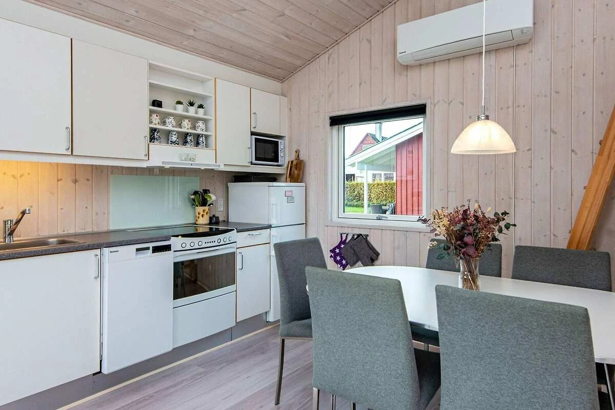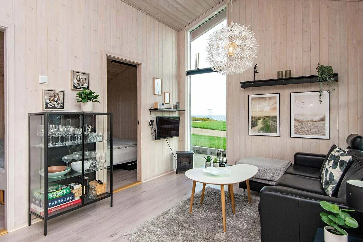 Bei Mommark finden Sie dieses kleine Ferienhäuschen mit Meerblick sowohl vom Haus als auch vom Grundstück aus. Das Haus ist innen hell und gemütlich eingerichtet, mit angenehmer Fußbodenheizung im ganzen Haus. Es gibt eine gut ausgestattete, offen integrierte Küche mit Geschirrspüler, Mikrowelle und Kühl-/Gefrierschrank mit 30 l Gefrierkapazität. Die Küche ist mit dem Wohnzimmer verbunden, wo sich ein Radio mit Bluetooth-Lautsprecher, Fernseher und Chromecast befindet und 200 MB zur Verfügung stehen, damit Sie Ihre eigenen TV-Anbieter streamen können. Von der Wohnküche aus gelangt man auf eine schöne überdachte Terrasse, auf der ein Grill und Gartenmöbel zur Verfügung stehen. Das Ferienhaus bietet Platz für bis zu sechs Personen, verteilt auf zwei Schlafzimmer mit einem Doppelbett bzw. zwei Einzelbetten. Die letzten beiden Schlafplätze befinden sich auf dem Dachboden / Hems und eignen sich für größere Kinder (6-12 Jahre). Es gibt auch ein schönes Badezimmer mit Dusche und Waschmaschine im Haus, das zudem mit einer klimafreundlichen Wärmepumpe ausgestattet ist, die ganzjährig für ein gutes Raumklima sorgt. Für die Kleinen gibt es sowohl einen Hochstuhl als auch ein Kinderbett. Bitte beachten Sie, dass das Aufladen eines Elektroautos über den Stromkreis des Hauses nicht gestattet ist. Es gibt 8 Ladestationen am Business College Syd in Mommark, etwa 1500 m vom Haus entfernt. Das Ferienhaus liegt in einem schönen Ferienhausgebiet in der Nähe von Mommark. Die wunderschöne Natur lädt zum Wandern und Radfahren ein. Das Haus steht auf einer Gemeinschaftsfläche und unten in Richtung Strand gibt es einen weiteren großen, offenen Bereich mit Rasen, Bolzplatz, Lagerfeuer, Spielplatz und Treppe hinunter zum Wasser, wo sich ein Badesteg befindet. Keine Vermietung an Jugendgruppen erwünscht!