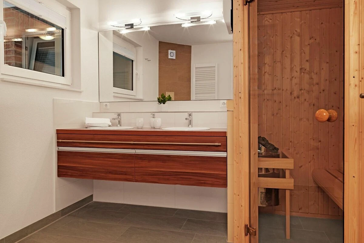Die woning beviel ons goed. In de uitrusting ontbrak een handdoekenhouder voor douche- en saunahanddoeken in de badkamer. In de keuken ontbrak een thermoskan en een haak voor een keukenhanddoek.