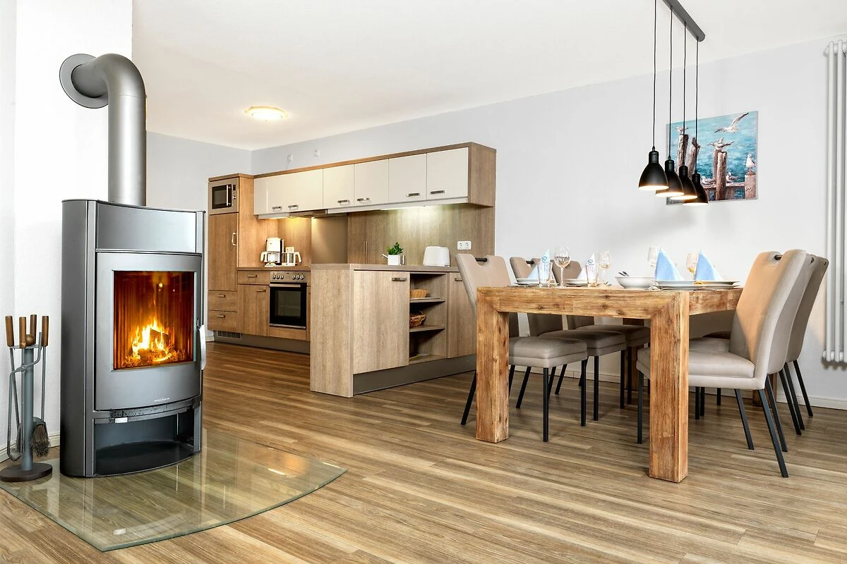 We hebben ons in de Strandkrabbe zeer prettig gevoeld, het uitzicht vanuit de woonruimte is prachtig, uitzicht over de kleine haven en de Oostzee met schilderachtige zonsondergangen in de avond. Het was ook zeer gezellig met de kachel en de kleine sauna in de badkamer heeft ook veel bijgedragen aan de ontspanning. Alle kamers zijn zeer smaakvol ingericht, zeer comfortabele grote bedden en veel ruimte. In de keuken ontbrak het ons aan niets. In de winter een zeer rustige plek en het strand om te wandelen is maar een paar meter verderop. Wij komen graag terug. Op de laatste twee dagen was de verwarming 's avonds koud. Dit hebben we op kantoor bij het vertrek gemeld en zal zeker worden opgelost.