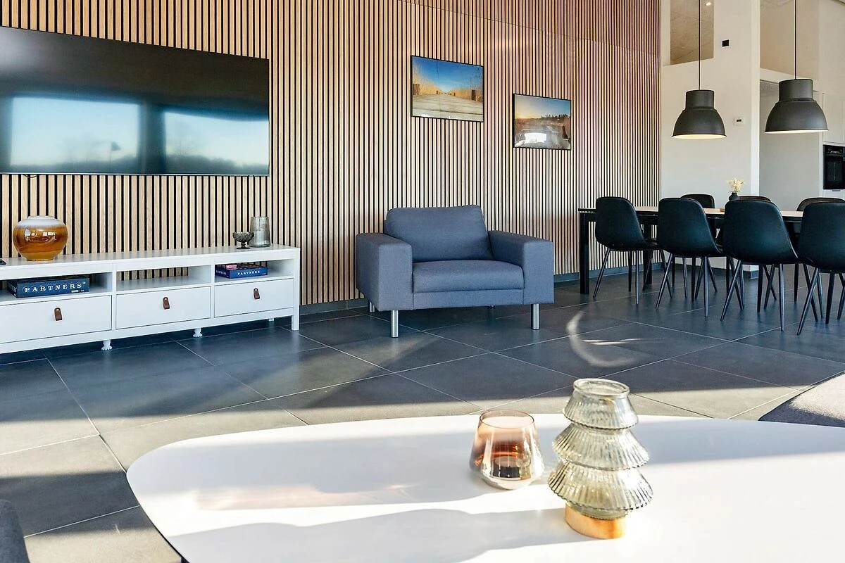 Im beliebten Ferienhausgebiet Bratten Strand finden Sie dieses hochwertige Ferienhaus aus dem Jahr 2022 mit Sauna, Freizeitangeboten für die ganze Familie, viel Platz und hohen Decken. Das ideale Ferienhaus für die große Familie, die sich viele Aktivitäten, eine gute Ausstattung und eine gemütliche Ferienhausatmosphäre wünscht. Das Ferienhaus ist modern eingerichtet und geschmackvoll dekoriert, wobei der Schwerpunkt auf einer gemütlichen Ferienhausatmosphäre lag. Es verfügt über vier Schlafzimmer mit guten Betten und viel Stauraum. Zwei Badezimmer mit Duschen und Fußbodenheizung sowie einen Hauswirtschaftsraum mit Waschmaschine und Trockner.Es gibt Internet mit einer Geschwindigkeit von 1000/1000. Das Herzstück des Ferienhauses ist ein großes, offenes Wohnzimmer mit guter Akustik, das mit der gut ausgestatteten Küche verbunden ist. Hier finden alle Platz zum gemeinsamen Kochen, Essen, Spielen, einem guten Film oder was auch immer Ihnen sonst noch einfällt. Der Raum hat große Fenster, durch die das faszinierende Licht Nordjütlands hereinflutet, und an warmen Tagen können Sie die schöne Holzterrasse öffnen. Das Nebengebäude ist ein beliebter Treffpunkt für die Kleinsten. Der helle Aktivitätsraum mit Darts, Billardtisch und Tischtennisplatte ist der perfekte Ort für Spiel und Spaß. Direkt daneben befinden sich die Sauna und die Außendusche des Ferienhauses. Im Außenbereich laden die großen, mit dem Haus verbundenen Terrassen zum Sonnenbaden, Grillen und Entspannen ein. Auf der Rasenfläche gibt es viel Platz für Spiele und Ballspiele. Außerdem gibt es einen Spielturm mit Schaukeln, Rutsche und Sandkasten. Der kinderfreundliche Sandstrand ist nicht weit vom Haus entfernt. Das ruhige Wasser bietet zahlreiche Möglichkeiten zum Spielen und sicheren Schwimmen. Optimale Bedingungen für Wassersportarten wie Tauchen, Surfen, Segeln, Kajakfahren und Angeln. Es gibt einen 100 Meter langen, barrierefreien Badesteg mit Tischen und Bänken, einer Treppe zum/vom Wasser und vielem mehr. Der Zugang zum Badesteg ist auch für Rollstuhlfahrer möglich. Außerdem gibt es einen großen Spielplatz mit Trampolinen, Schaukeln, Fußballtoren und einer Handicap-Schaukel. Außerdem gibt es einen Lebensmittelladen und ein Café, das von Ostern bis nach den Herbstferien an den Wochenenden und ab Pfingsten und den ganzen Sommer über täglich ab 7 Uhr geöffnet ist. Nicht mietbar für Jugend- und Handwerkergruppen.A refundable deposit might be charged closer to your check-in date. The security deposit ensures a smooth stay and covers any additional services or consumption charges.This deposit covers utilities consumed during your stay and any additional services that may be taken.The final amount will be adjusted based on actual meter readings, actual usage of extra services, and any remaining balance will be refunded within 21 days after checkout.This deposit simply acts as a prepayment for charges that you would anyways pay for, ensuring a seamless stay and check-out experience.
