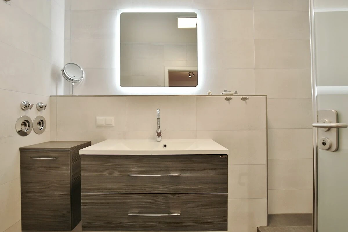 De badkamer werd gerenoveerd. De badkuip werd verwijderd en er werd een grote, drempelvrije douche geïnstalleerd. Het is heel heilzaam en mooi geworden.