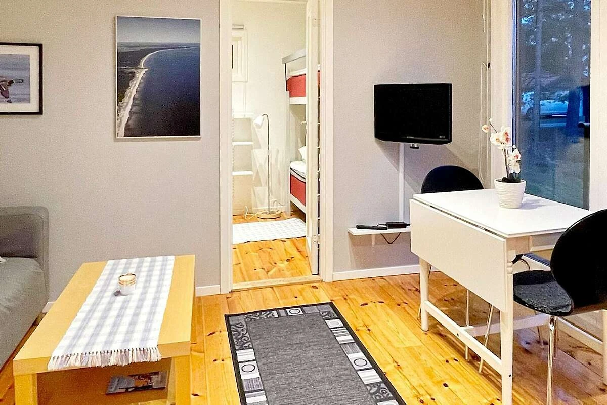 Het vakantiehuisje bestaat uit een open keuken en woonkamer. Eetgedeelte voor iedereen, tv, internet en Chromecast. De badkamer heeft een douche, toilet en wastafel. De slaapkamer heeft twee stapelbedden en is verbonden met de woonkamer. De keuken is iets kleiner, maar volledig uitgerust en heeft alles wat u nodig heeft.