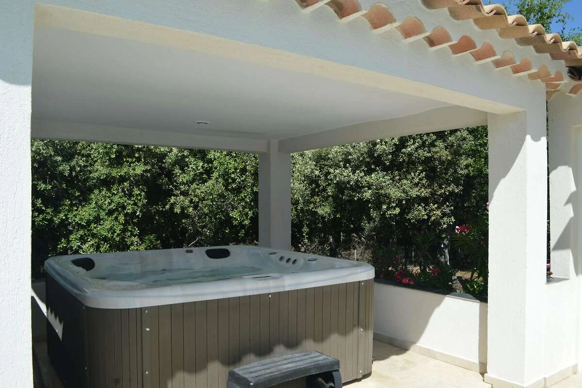 Een aparte jacuzzi-ruimte. Zwembadverwarming is op aanvraag beschikbaar buiten de zomermaanden; in juli en augustus is het water natuurlijk warm.