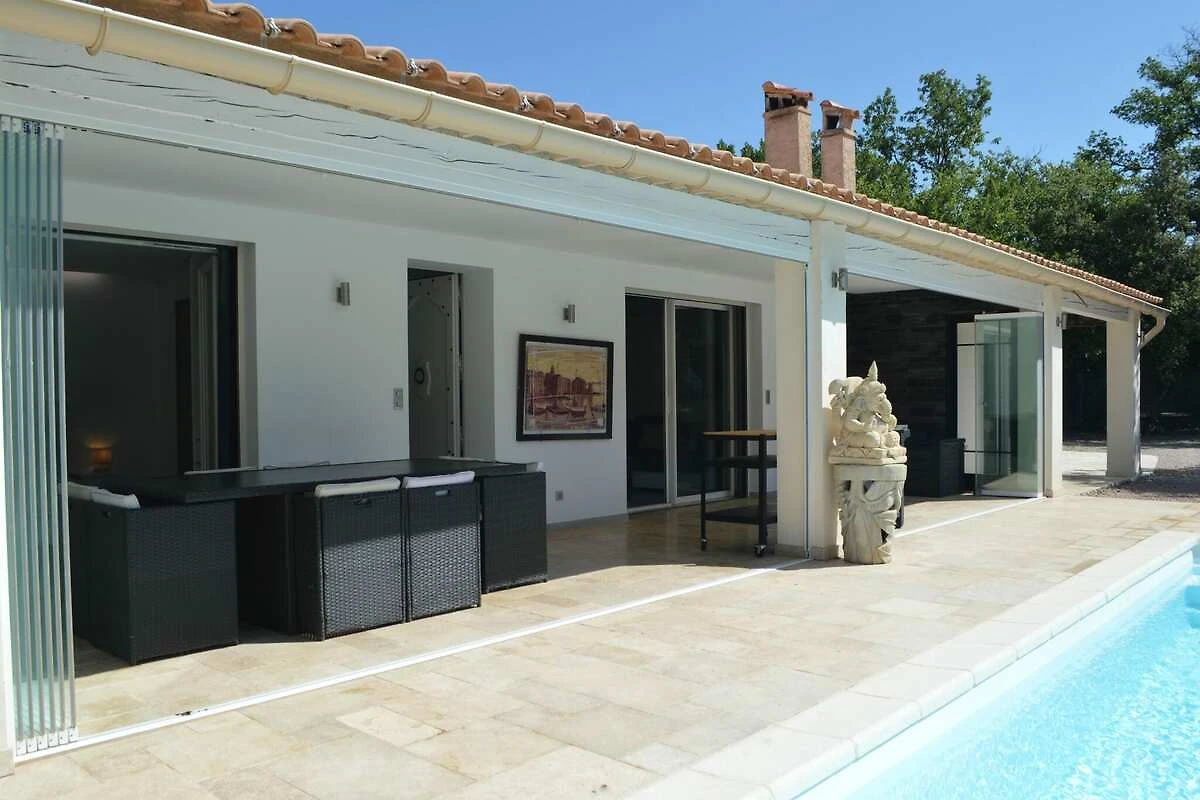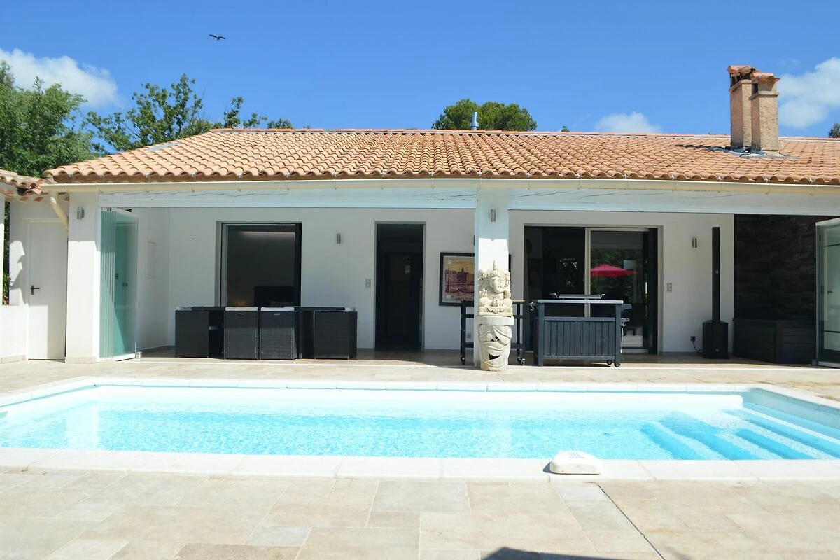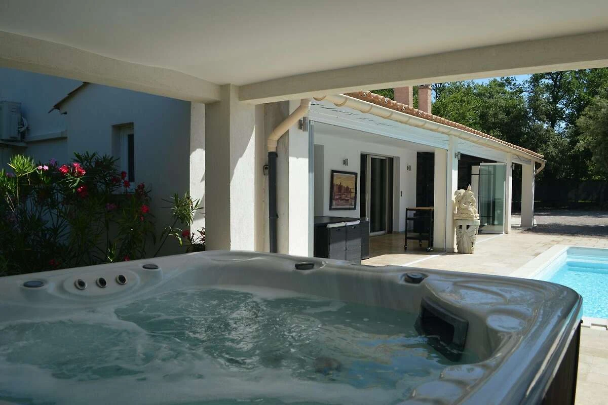 draadloos muzieksysteem, bubbelbad(privé, buiten), wasmachine, airconditioning, tuinmeubilair, BBQ(gas), parking, zwembad(privé, verwarmd, 7 x 4 m.), jeu de boules baan, tafeltennistafel, strijkplank, strijkijzer