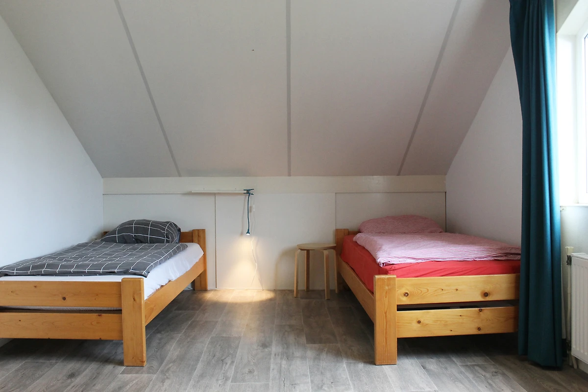 Er zijn twee slaapkamers op de bovenverdieping van het huis. De eerste slaapkamer heeft een tweepersoonsbed met eenpersoonsmatrassen en de tweede slaapkamer heeft vier eenpersoonsbedden. De badkamer is ook op deze verdieping. De badkamer heeft een douchecabine, een toilet en een badkamermeubel.