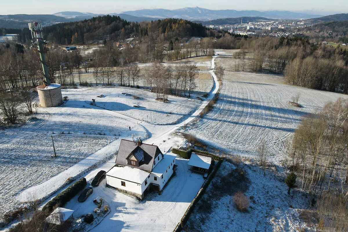 Ligging: Nova Ves nad Nisou, wijk Nova Ves nad Nisou, 700 m boven de zeespiegel. De vrijstaand, in 1970 gebouwde en in 2017 gerenoveerde hut is functioneel en in lokale stijl ingericht. Het grondstuk is in een vakantiehuis-gebied. Deze plaats is populair vanwege het uitzicht op de bergen en het ligt aan de bosrand op een rustige, zonnige en afgescheiden plek. De 600 m lange toegangsweg naar het terrein gaat via een onverharde zijstraat. In de winter zijn sneeuwkettingen aan te raden. Bij de hut zijn U 7 parkeerplaatsen voor meerdere auto's op het perceel beschikbaar. Openbare parkeerplaatsen zijn op een 35 m afstand parkeerplaats in de plaats. De dichtsbijzijnde winkels zijn op 400 m afstand (in de winter 400 m), restaurant 4 km en centrum 400 m. overdekt zwembad, sauna, bioscoop elk 5 km in Jablonec nad Nisou. discotheek in Morille 2 km. dokter in Nova Ves nad Nisou 400 m. vliegveld in Praha 10 km. Een kinderspeelplaats op 1000 m afstand. spoorlijn 600 m en hoofdweg 200 m.
