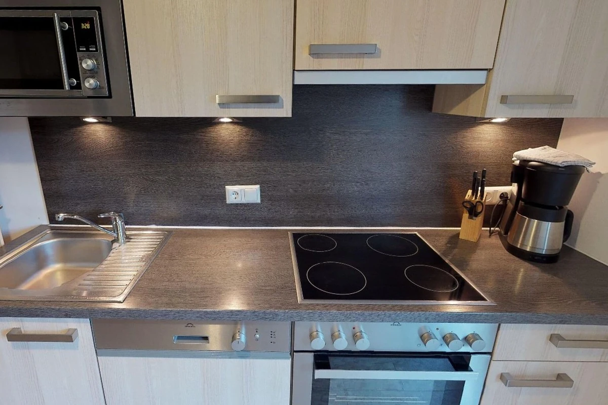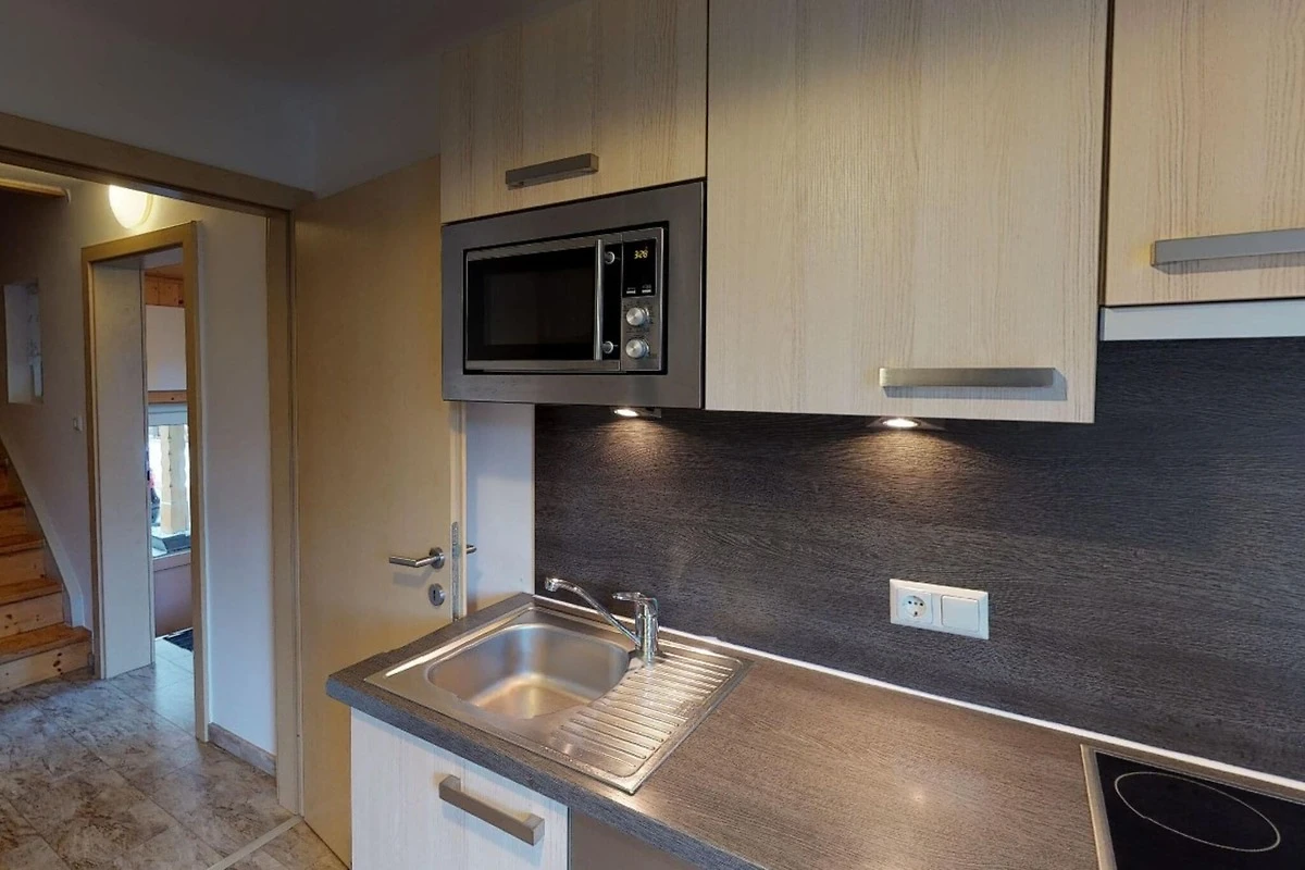 Het aangenaam ingerichte verblijf beschikt over een volledig uitgeruste keuken inclusief vaatwasser. De woonkamer is voorzien van een gezellige zithoek, een tv en 2 slaapbanken. Er is bovendien parkeergelegenheid beschikbaar op het terrein.
