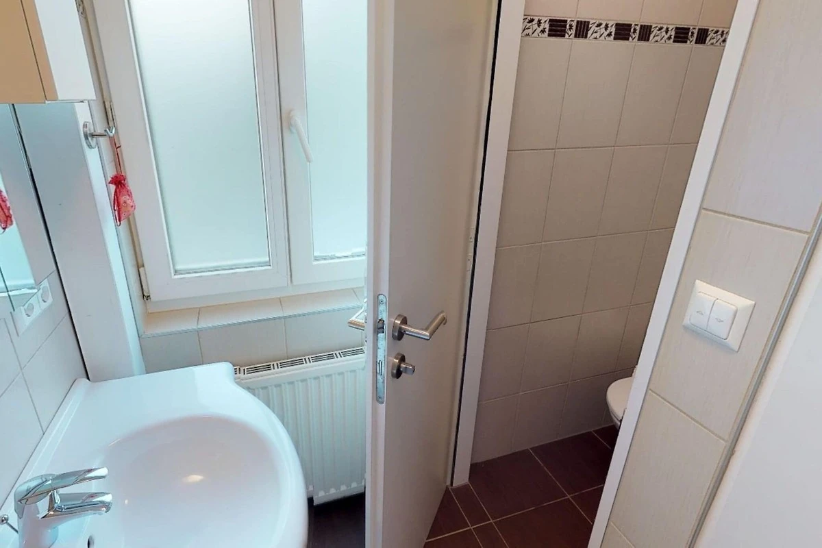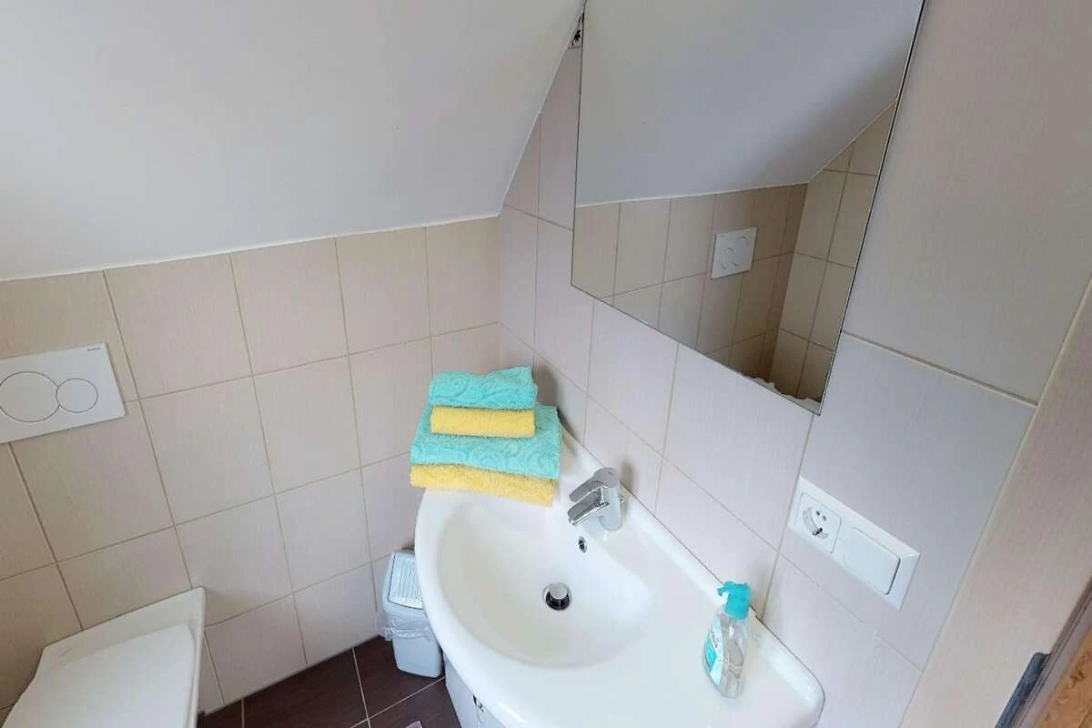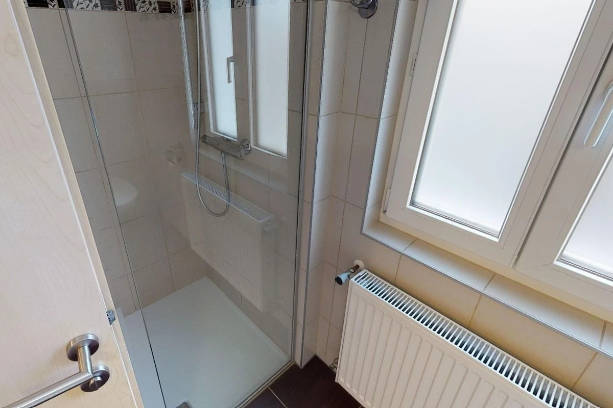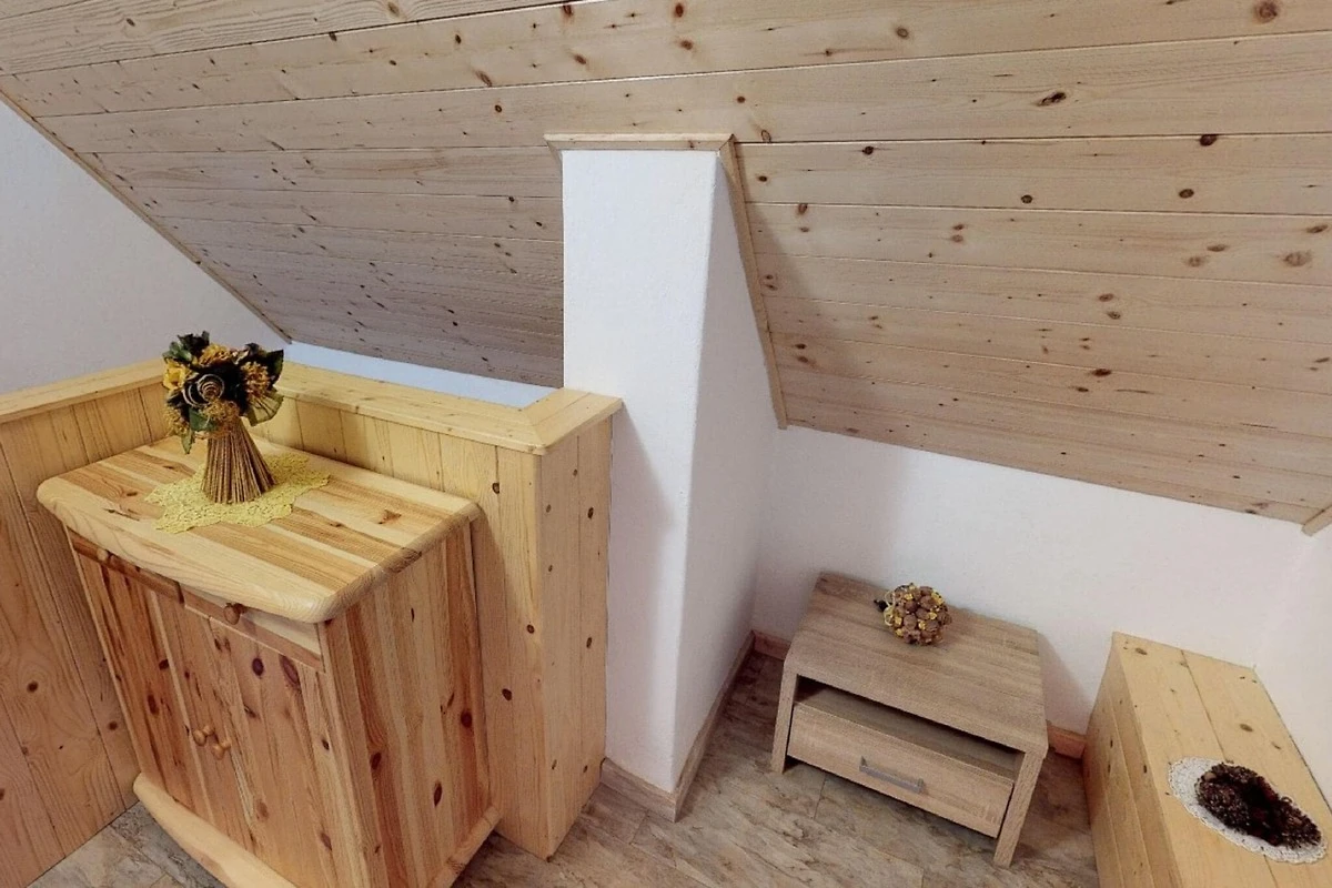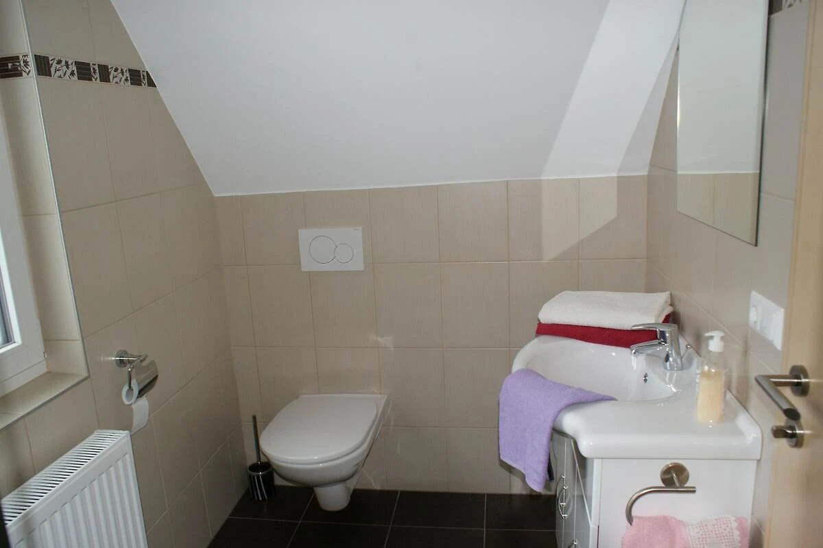 Op de 1e etage: (slaapkamer(2-pers. bed), slaapkamer(1-pers. slaapbank, 2-pers. bed), badkamer(douche, wastafel, toilet))
