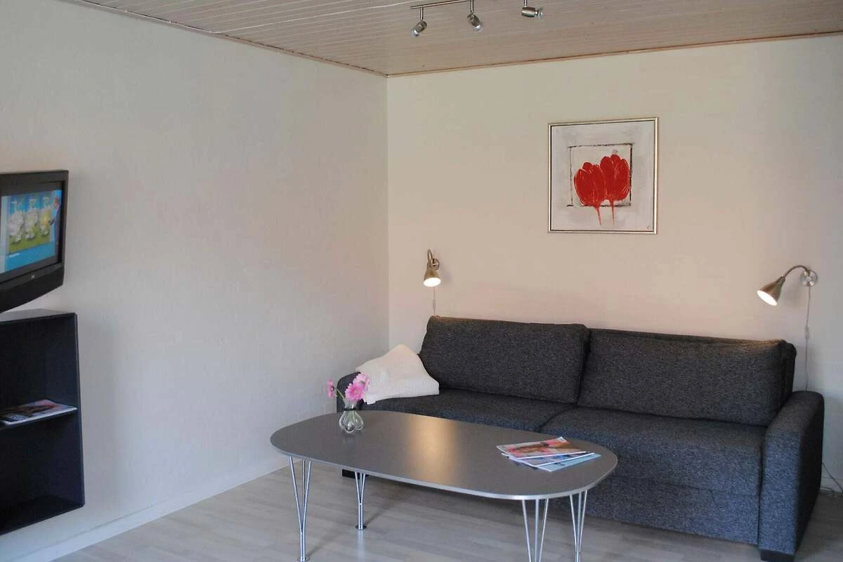 , keuken(fornuis(elektrisch), koffiezetapparaat, koelkast(+ vriesvak)), woon/slaapkamer(2-pers. vouwbed, TV(duitse zender(s), Deense TV zenders (DR1 en TV2), zweedse TV zenders)), slaapkamer(2x 1-pers. bed), badkamer(wasbak, douche, toilet), verwarming(elektrisch), tuinmeubilair, zwembad(gedeeld met andere gasten, buiten)