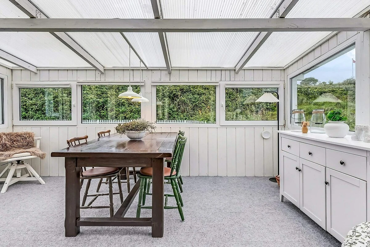 Neues Haus in unserem Programm ab Frühjahr 2023. - MAX 1 KLEINER HUND! Traumhaft gelegenes kleines gemütliches Ferienhaus. In der Nähe des Strandes und der Einkaufsmöglichkeiten und Restaurants. Schöne Anlage mit vielen gemütlichen Ecken. Hier können Sie sitzen und das Rauschen des Meeres genießen. Das Ferienhaus ist mit einem geräumigen Wohnzimmer mit Essbereich und einer Sofaecke am Holzofen ausgestattet. Vom Wohnzimmer aus treten Sie in den schönsten Wintergarten, der ganzjährig genutzt wird. Hier fühlt man sich wie draußen. Gemütliche Küche mit allem was man braucht. Badezimmer mit Fußbodenheizung. 1 Schlafzimmer mit Doppelbett. 1 Schlafzimmer mit Etagenbett 70x180. 1 Schlafzimmer mit Einzelbett. Wirklich erstklassige Lage. Annesk ist Privat. Kostenlose Endreinigung.A refundable deposit might be charged closer to your check-in date. The security deposit ensures a smooth stay and covers any additional services or consumption charges.This deposit covers utilities consumed during your stay and any additional services that may be taken.The final amount will be adjusted based on actual meter readings, actual usage of extra services, and any remaining balance will be refunded within 21 days after checkout.This deposit simply acts as a prepayment for charges that you would anyways pay for, ensuring a seamless stay and check-out experience.