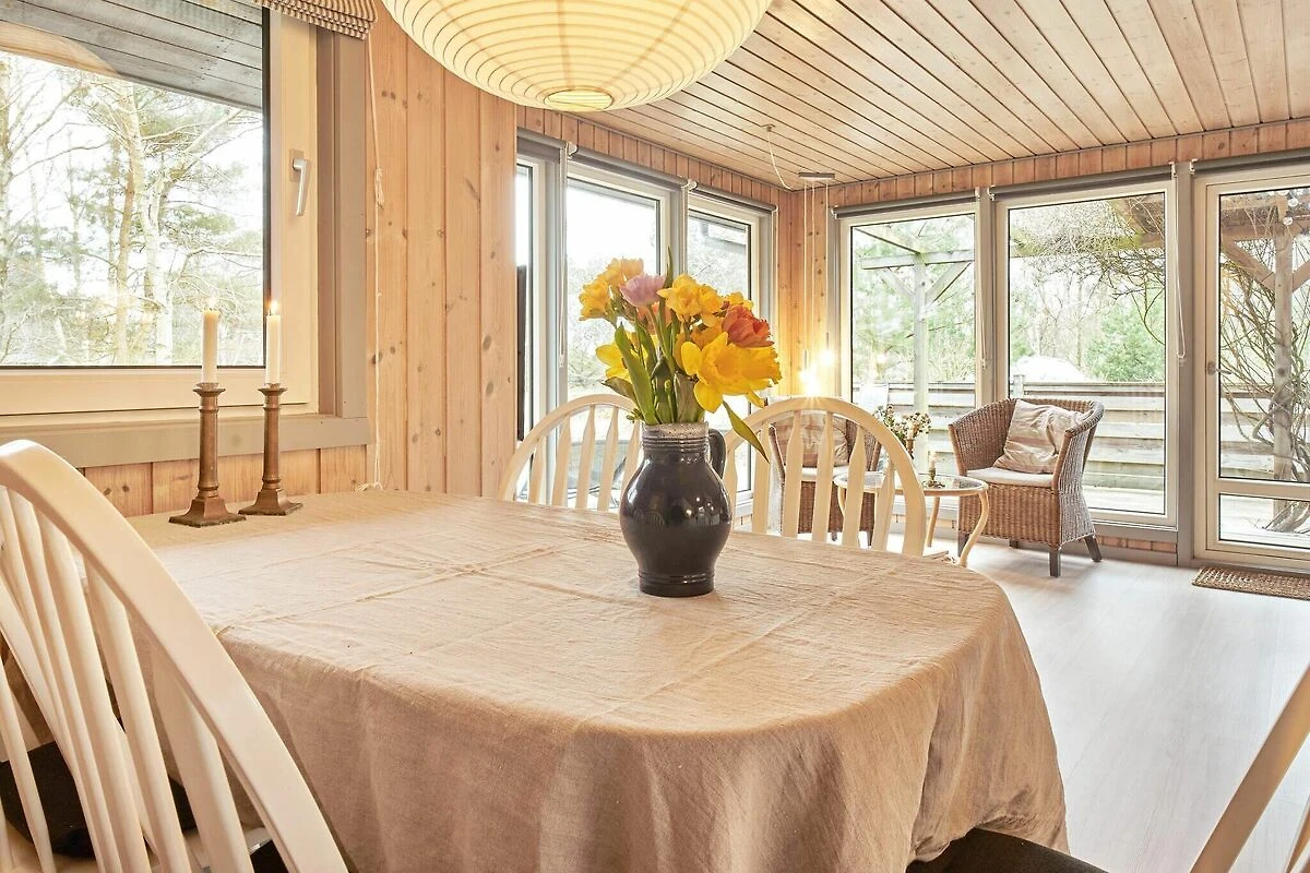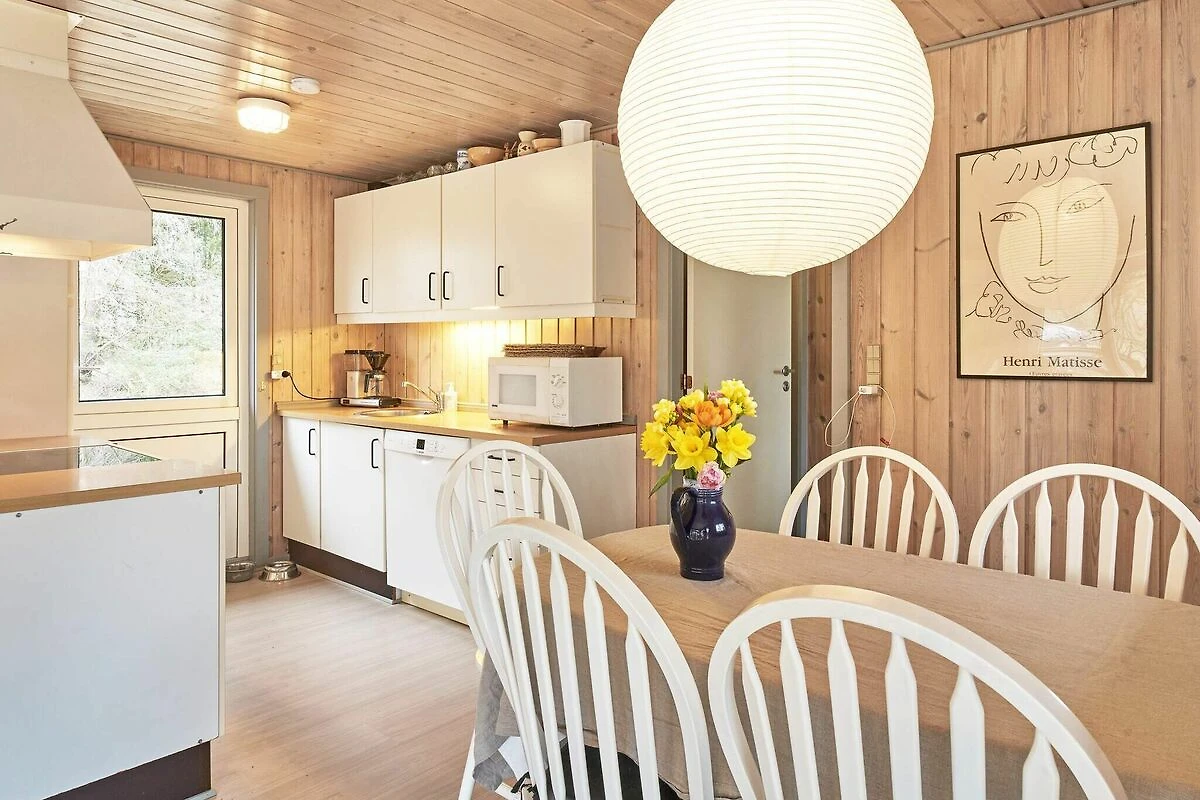 Charmantes Sommerhaus in der malerischen Gegend von Vestre Sømarken, nur etwa einen Kilometer von einem der schönsten Sandstrände Bornholms entfernt. Ob Sie Lust auf ein Gourmetessen im einzigen Michelin-Stern-Restaurant Bornholms in Strandnähe haben oder lieber eine entspannte Mahlzeit mit lokalen Räucherdelikatessen aus dem Bakkarøgeriet genießen möchten – die Gegend hat für jeden Geschmack etwas zu bieten. Das Haus verfügt über ein geräumiges Wohn- und Esszimmer mit offener Küche, ideal für geselliges Beisammensein und Familienzeit. Große Glasfronten durchfluten den zentralen Wohnbereich mit Tageslicht und schaffen eine helle und einladende Atmosphäre. Es gibt zwei Schlafzimmer, die jeweils mit einem Doppelbett ausgestattet sind. Zur Unterhaltung stehen Satellitenfernsehen und Chromecast-Zugang für das Streamen Ihrer Lieblingsinhalte zur Verfügung. Vom Wohnzimmer aus gelangen Sie direkt auf die große, nach Süden ausgerichtete Terrasse, die teilweise überdacht ist, sodass Sie sich bei jedem Wetter wohlfühlen können. Hier finden Sie hochwertige Gartenmöbel, Sonnenliegen und einen Grill – ideal für lange Sommerabende. Bitte beachten Sie, dass das Haus nicht an Jugendgruppen vermietet wird.