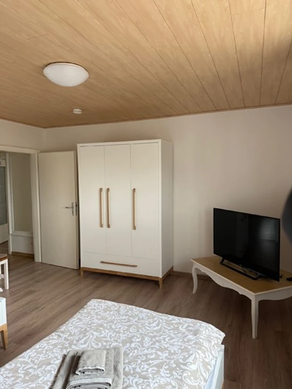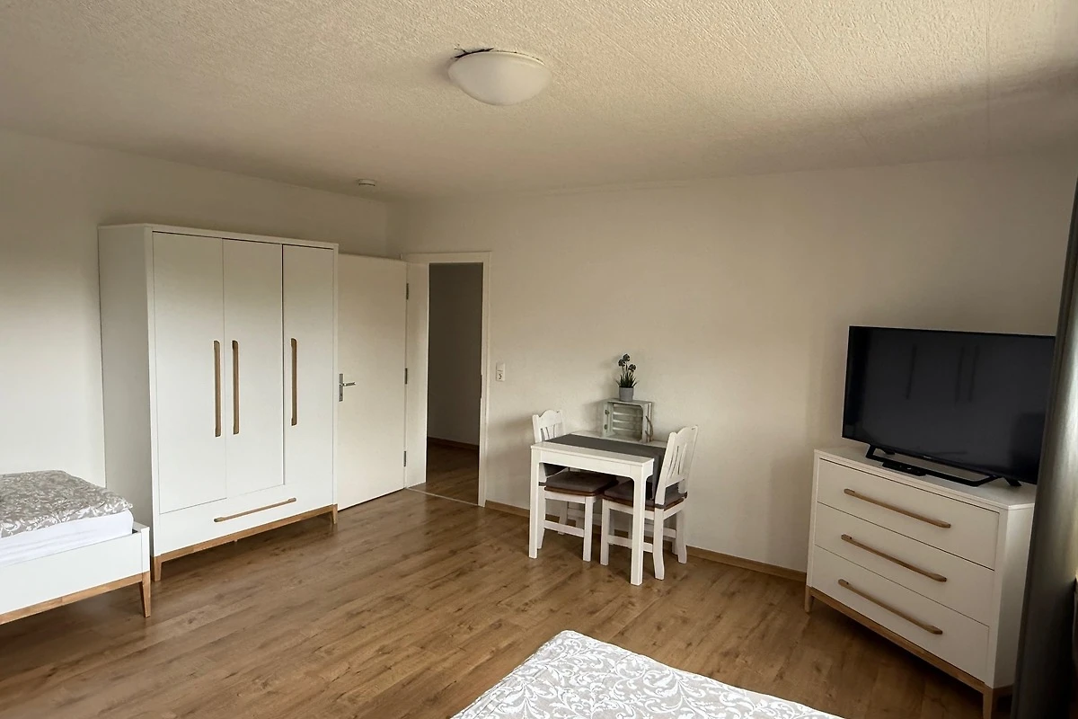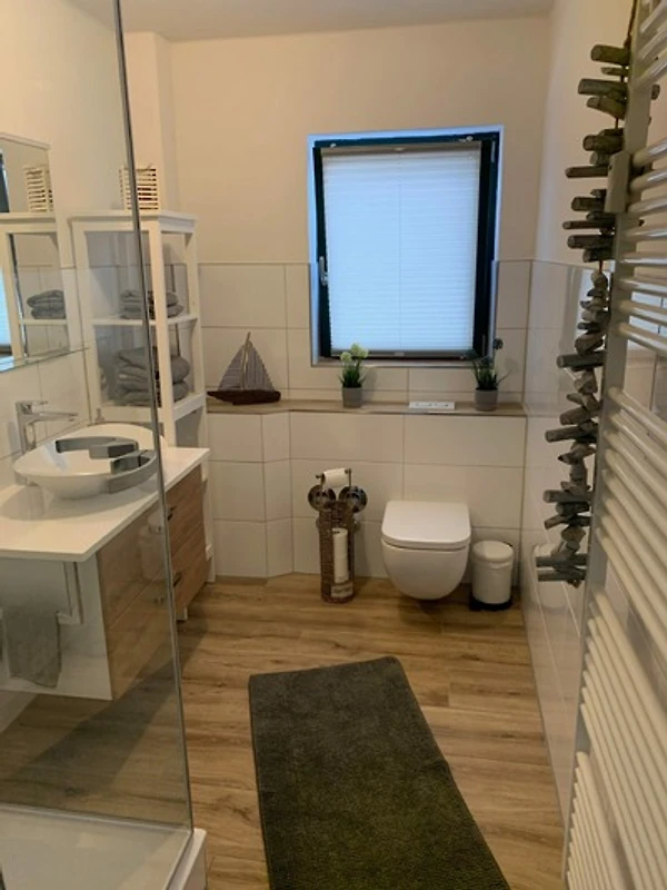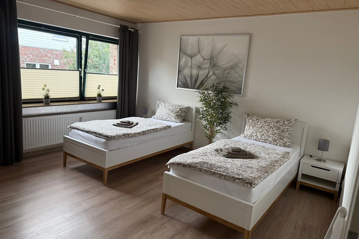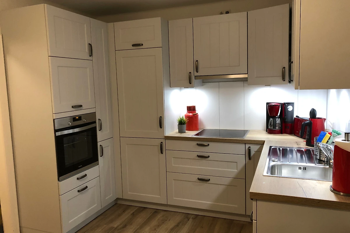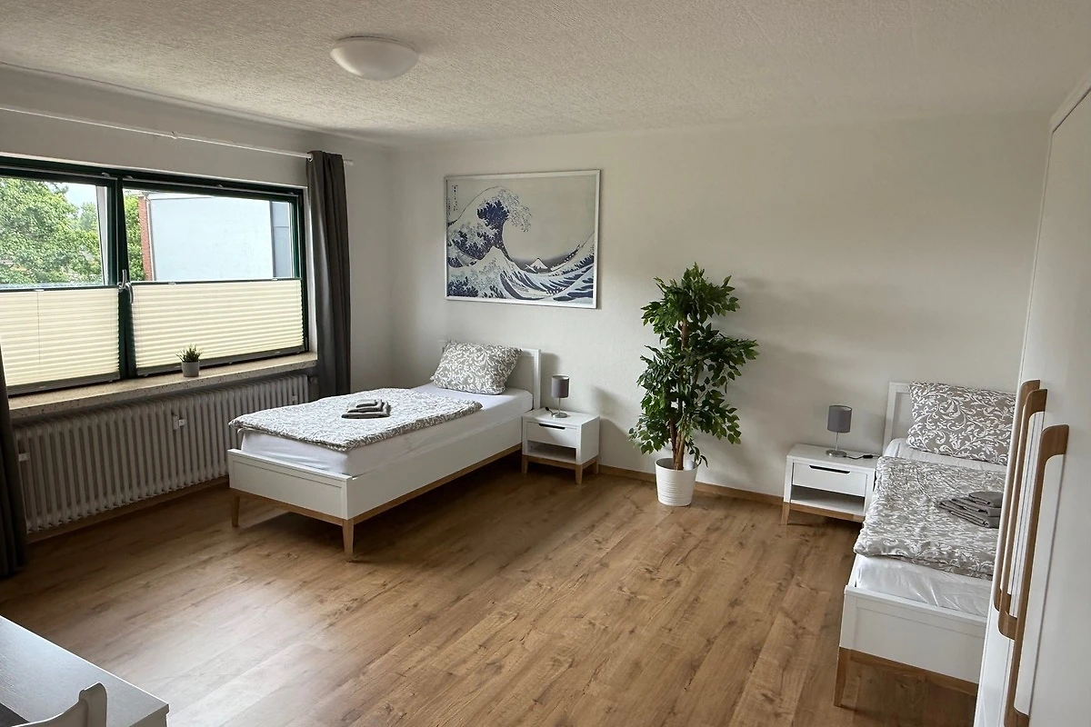De voorafgaande informatie over aankomst en betrekken van het appartement was voorbeeldig. Het redelijk grote appartement is ingericht voor 6 personen, wat voor ons drieën natuurlijk bijzonder comfortabel was. Goed uitgerust (voor theedrinkers graag nog een glazen theepot toevoegen) en schoon. Iets ongebruikelijk waren de zes eenpersoonsbedden (2 slaapkamers/elk twee bedden + zeer grote woonkamer met twee bedden). De relatief centrale locatie is aangenaam en toch niet luidruchtig. Twee discounters en een bakker zijn slechts ongeveer 200 m verwijderd. Parkeren bij het appartement op werkdagen is moeilijk vanwege de beperkte parkeertijd, maar er zijn voldoende gratis parkeerplaatsen in de buurt. We konden het terras helaas(!) niet gebruiken vanwege het onzekere weer. Al met al kunnen we het appartement aanbevelen.