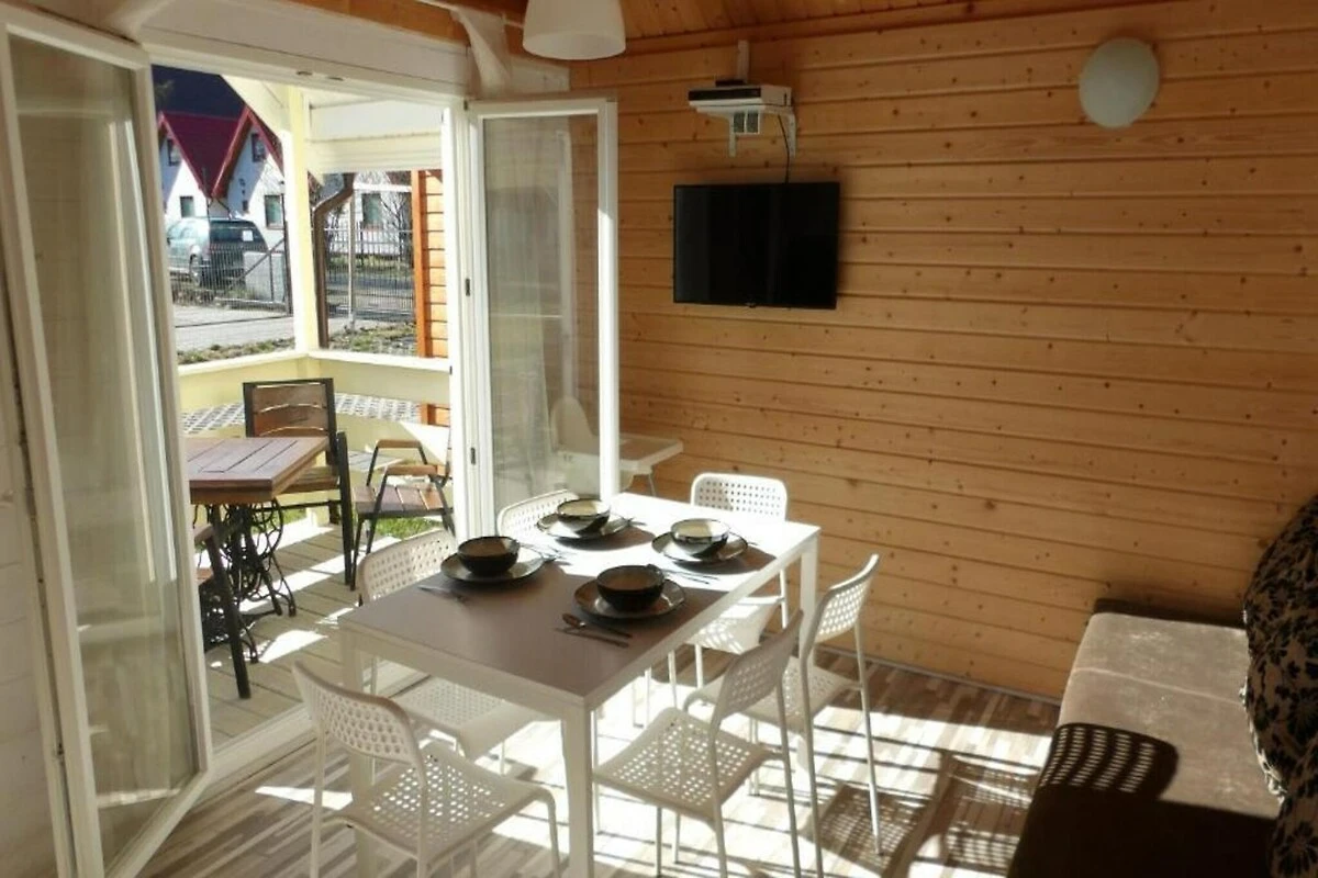 Het gezellige vakantiehuis bestaat uit een woonkamer die verbonden is met de keuken, een slaapkamer (2 eenpersoonsbedden die samengevoegd kunnen worden tot een tweepersoonsbed) en een badkamer met douche. Op de tussenverdieping bevindt zich een tweede slaapkamer (2 eenpersoonsbedden die samengevoegd kunnen worden tot een tweepersoonsbed). Iedere woning beschikt over een overdekt terras met tuinset. Elektrische verwarming + airconditioning. Draadloos internet beschikbaar.