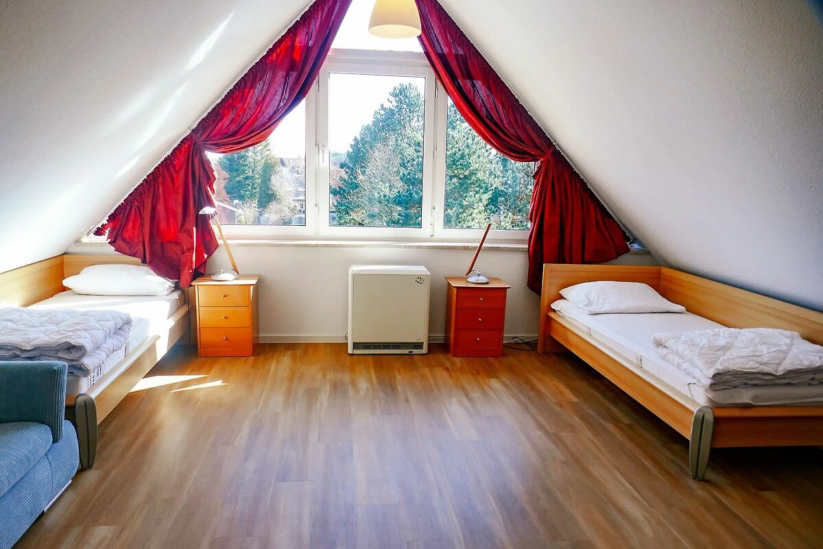 Mooie, rustige locatie, op loopafstand van het strand en het centrum van Sahlenburg. De woning is al wat verouderd. De kamer (bed 3 en 4, evenals slaapbank) onder het dak wordt bij zomerse temperaturen te warm.