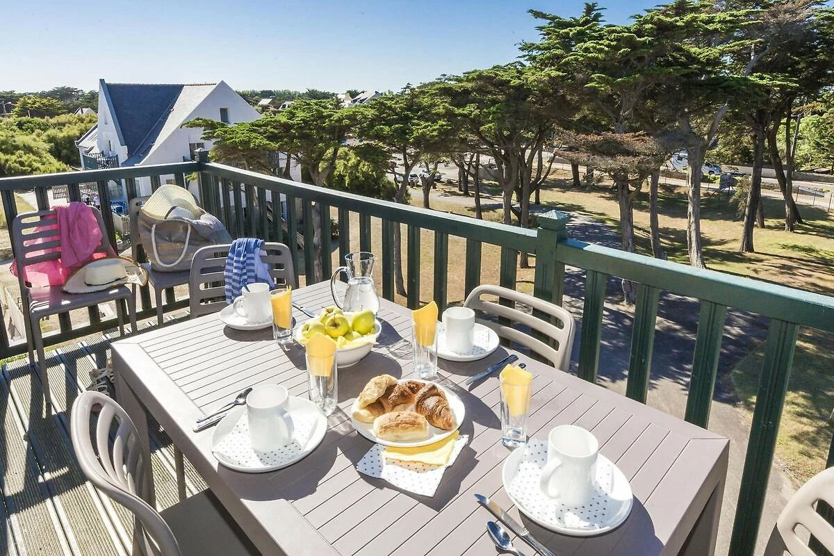Dit appartement ligt in de residentie Valentin Plage en is een ideaal adres voor een geslaagde zomervakantie in de zogenaamde ''Côte Sauvage'' bij de baai van La Baule. Het kleine, afgesloten en groene domein (2 ha) bestaat uit een monumentaal hoofdgebouw en drie bijgebouwen (zonder lift).