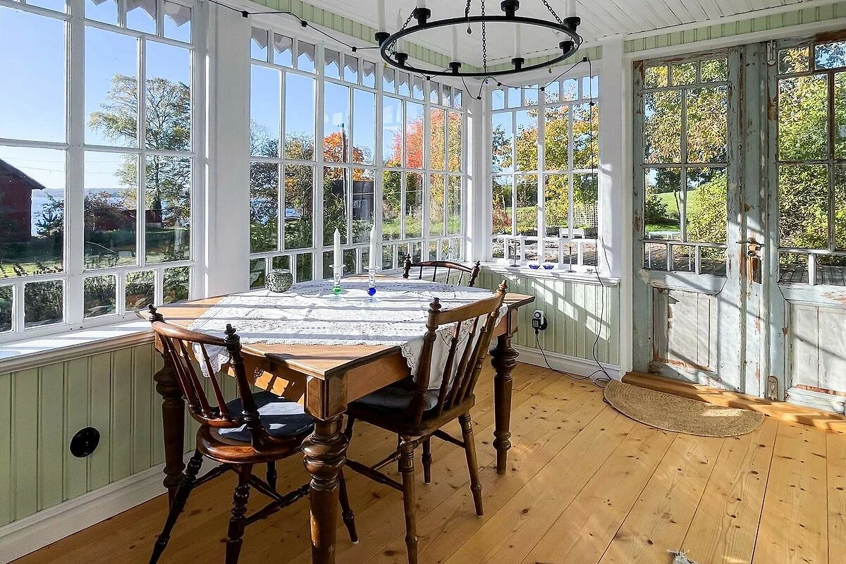 Willkommen in diesem ansprechend renovierten, einzigartigen Feriendomizil, ursprünglich und traditionell aus der Jahrhundertwende, mit eigenem Grundstück und malerischer Umgebung in Bellö, im Bezirk Småland. Hier können Sie die Ruhe und den Blick auf den See so richtig genießen. Im großen Garten mit Rosen und Stauden gibt es eine schöne Terrasse mit Gartenmöbeln, Liegestühlen und Grill. Unten am Seeufer können Sie ein erfrischendes Bad nehmen oder eine entspannte Fahrt mit dem kleinen Ruderboot unternehmen, das inklusive ist (bitte eigene Schwimmwesten mitbringen, ein kleiner Elektromotor kann vor Ort gemietet werden). Es gibt auch Gartenmöbel am Seeufer. Das Haus hat zudem eine schöne verglaste Veranda mit herrlichem Seeblick! Die Küche des Hauses, mit einem schönen Essbereich, ist eine Augenweide! Zur umfassenden Ausstattung gehören Geschirrspüler, kombinierter Backofen/Mikrowelle, Induktionskochfeld und gusseiserner, alter Holzherd. Das Wohnzimmer verfügt über eine gemütliche Sitzgruppe mit Sessel, wo Sie vor dem Feuer im Kachelofen oder vor dem Smart-TV mit zugehörigem Chromecast (zum Streamen eigener TV-Anbieter) entspannen können. Freies LAN ist verfügbar (10 Mbit). Im Obergeschoss befinden sich drei Schlafzimmer; eines mit 180 cm breitem Doppelbett und 80 cm breitem Einzelbett, das zweite mit Vorhängen und ebenfalls Doppel- und Einzelbett. Der Raum oberhalb der Treppe dient als drittes Schlafzimmer (ohne Zimmertür) ist mit einem Bett, das zu einem Doppelbett ausgezogen werden kann, ausgestattet. Es gibt auch ein einfacheres Zustellbett, das Sie nach Belieben aufstellen können. Unten befindet sich ein umwerfend schönes Badezimmer mit Badewanne, WC und Doppelwaschbecken. Auf der oberen Etage, mit Eingang von einem der Schlafzimmer, befindet sich ein WC mit Waschbecken. Kombinierter Waschtrockner im Haus. Neben dem eigenen Sandstrand gibt es in unmittelbarer Nähe noch zwei größere Badestrände. Der öffentliche Strand ist ca. 600 m entfernt, dort gibt es einen Badesteg, Schwimmfloß, Spielplatz, Feuerstelle und den bei schönem Wetter geöffneten „Sonnenkiosk“. Das kleine Häuschen 52834 wird ebenfalls über Stugsommar/Dancenter vermietet, falls Sie mit mehr als neun Personen anreisen möchten. KEINE VERMIETUNG AN ALLEINREISENDE JUGENDLICHE UNTER 25 JAHREN ERWÜNSCHT!