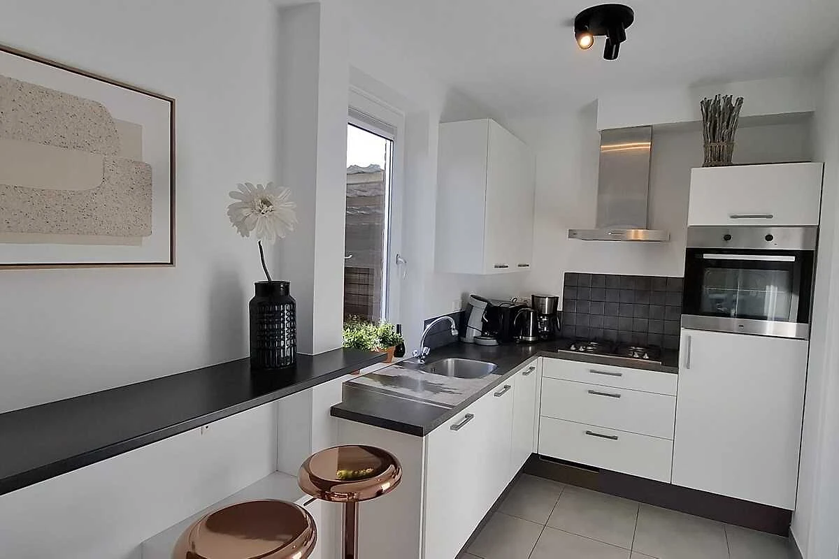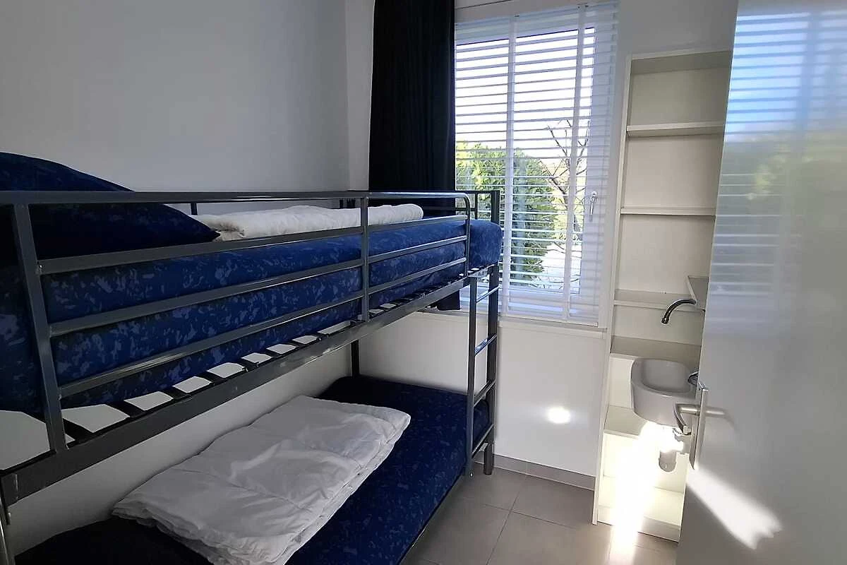 Dit vakantiehuis heeft 3 slaapkamers met en-suite wastafels, waarvan 2 op de begane grond en 1 op de begane grond. De kamer op de begane grond heeft een stapelbed. De 2 slaapkamers op de eerste verdieping hebben 2 aparte boxspringbedden. Het huis heeft een keuken met vaatwasser en oven. Het vakantiehuis heeft ook 2 terrassen.