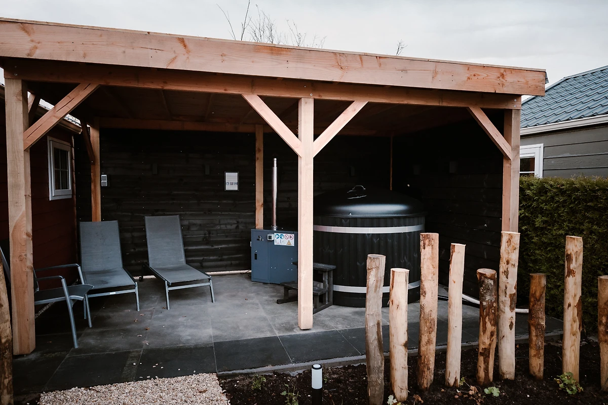 De Veluwelounge met sauna en hottub is een stijlvolle accommodatie voor 6 personen, gelegen op het rustgevende Recreatiepark De Boshoek op de Veluwe. Dit chalet biedt de perfecte combinatie van comfort en ontspanning. Het interieur is sfeervol ingericht met een gezellige zit- en eethoek, en de keuken is volledig uitgerust met moderne apparatuur, waaronder een vaatwasser, koelvriescombinatie en een combimagnetron. De drie slaapkamers bieden voldoende ruimte voor een verblijf met het gezin of een groep vrienden: één kamer met twee eenpersoonsbedden, een andere met een stapelbed, en een loft voor twee personen die met een trapje te bereiken is. De badkamer is voorzien van een douche, wastafel en toilet. Wat deze accommodatie echt bijzonder maakt, is de houtgestookte barrelsauna én de hottub in de tuin, waar u heerlijk kunt ontspannen na een dag in de natuur. De tuindouche zorgt voor extra verfrissing, hoewel deze in de wintermaanden tijdelijk afgesloten is. Geniet van de frisse buitenlucht op de veranda met schommelstoelen of op het terras in de omheinde tuin, waar u kunt genieten van de rust van de Veluwe. Bovendien zorgt de airconditioning in de Veluwelounge ervoor dat u in alle seizoenen comfortabel verblijft.