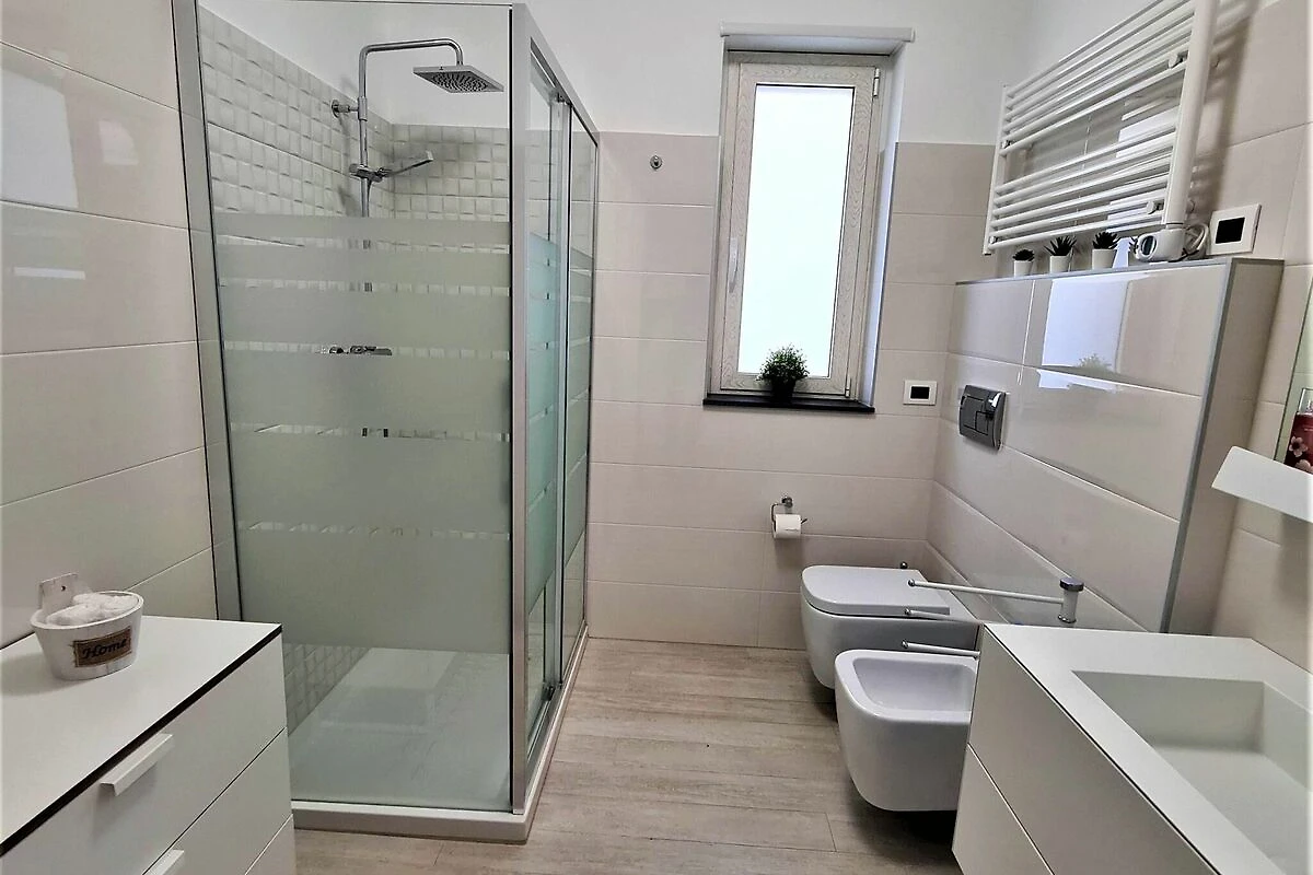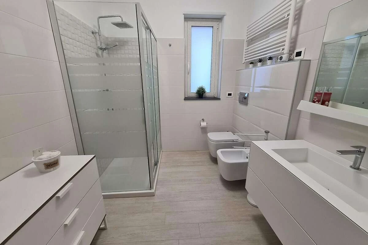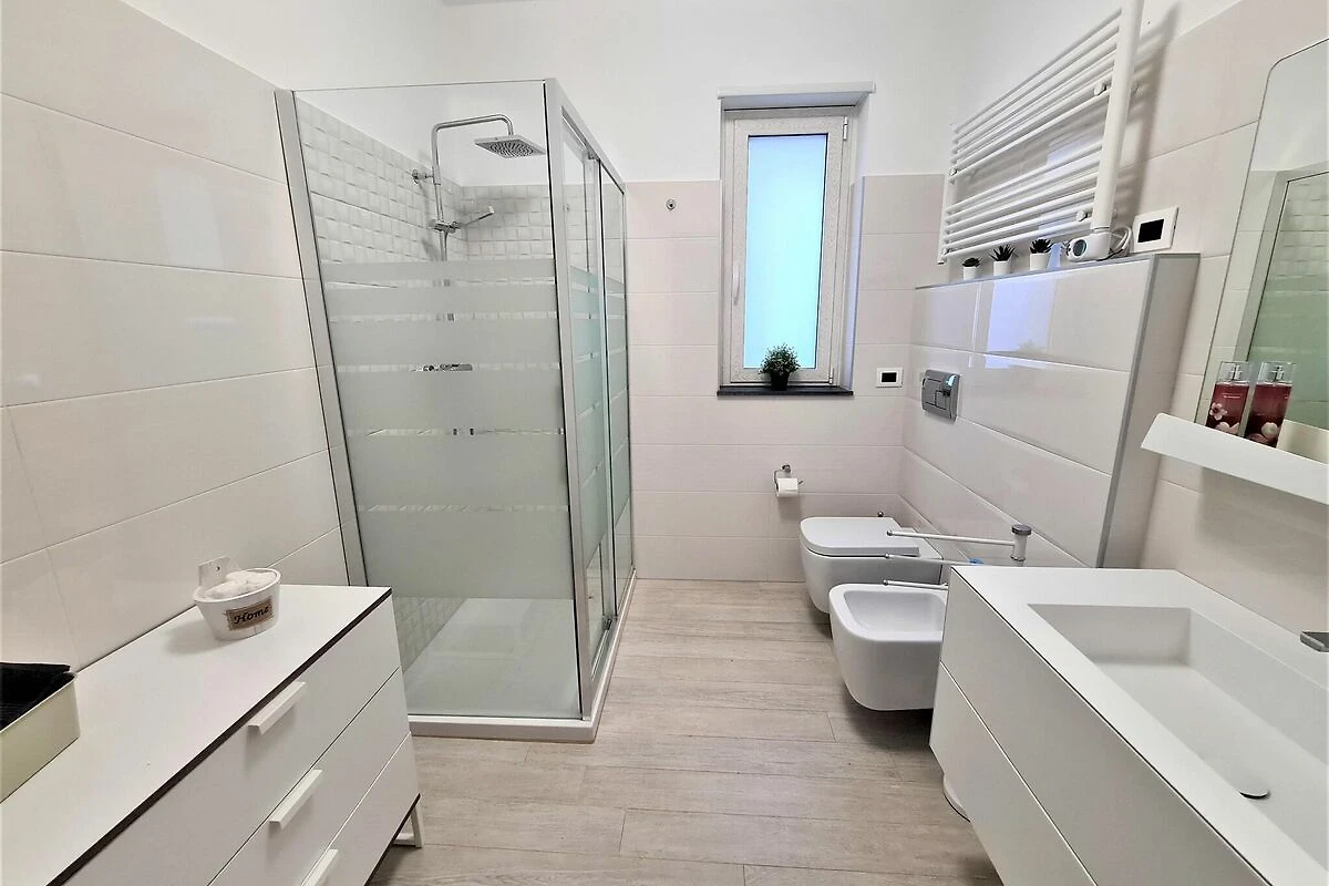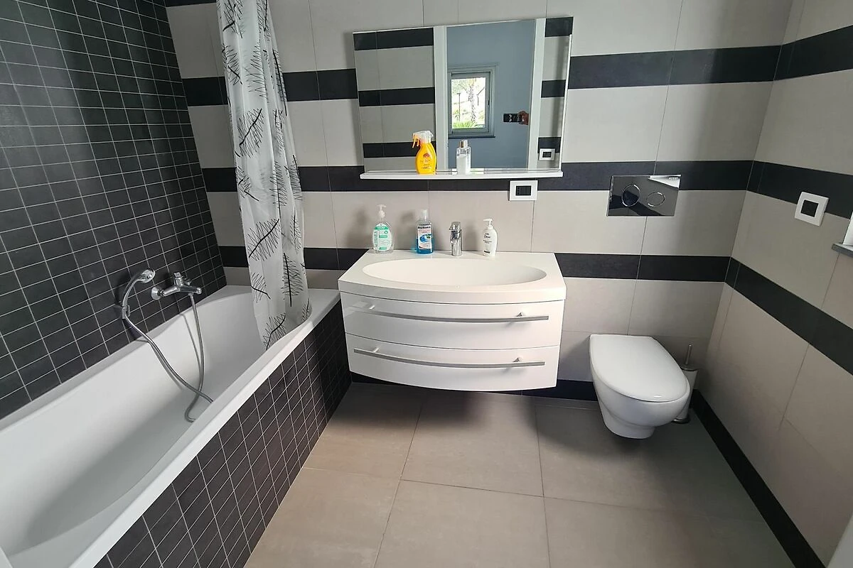 Parterre: (open keuken(kookplaat, waterkoker, kokend waterkraan, broodrooster, afzuigkap, koffiezetapparaat, oven, magnetron, afwasmachine, koel-/vriescombinatie, Citruspers), woon/eetkamer(TV(flatscreen, smart TV), eettafel, zithoek), slaapkamer(2-pers. bed), slaapkamer(2-pers. bed of 2x1 pers. Bedden), badkamer(douche, wastafel, toilet, bidet, haardroger), badkamer(douche, wastafel, toilet, bidet), badkamer(ligbad, wastafel, toilet, bidet), airconditioning)