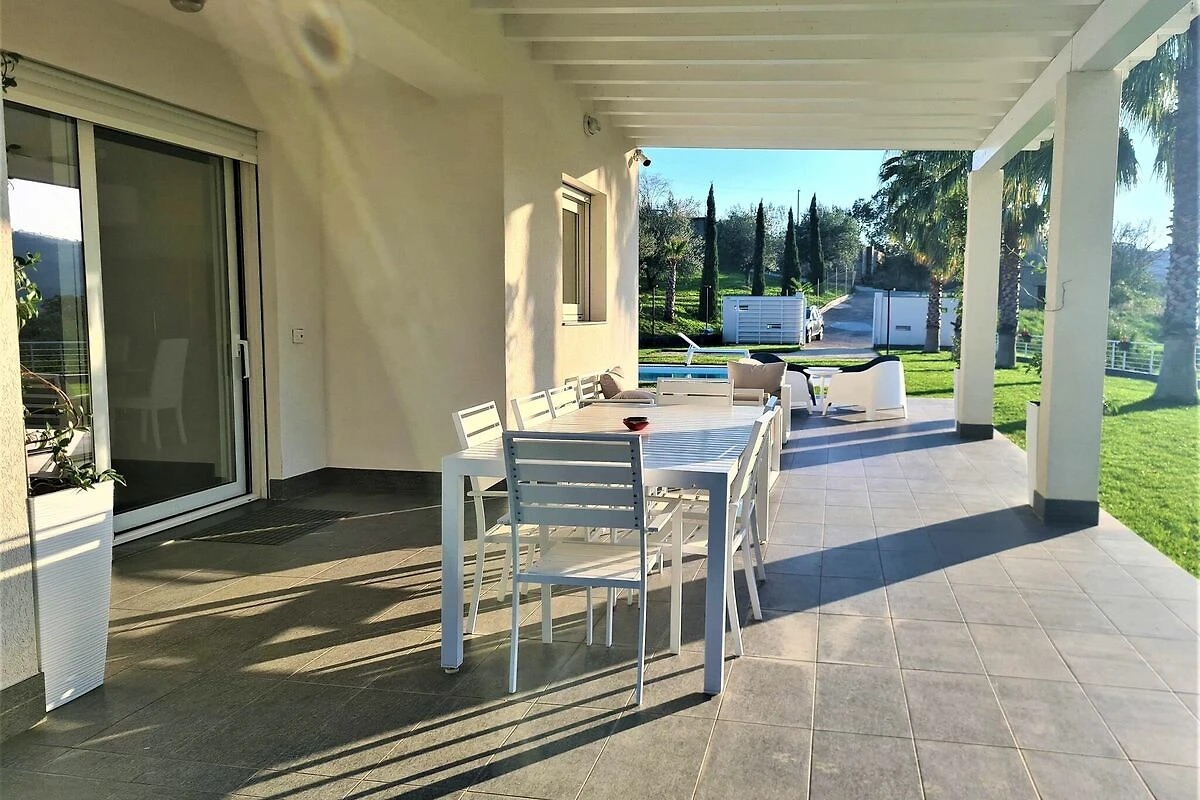 eettafel(8 personen), ledikant, wasmachine, verwarming(via airconditioning), terras(privé, overdekt, 140 m2), tuin(privé, omheind, 500 m2), tuin(5 hm2), tuinmeubilair, BBQ, parking, ligstoelen, parasol, zwembad(privé, buiten, 10 x 5 m., geopend van Jan t/m Dec), kinderstoel, strijkplank, strijkijzer, gezelschapsspellen, horren, plancha grill